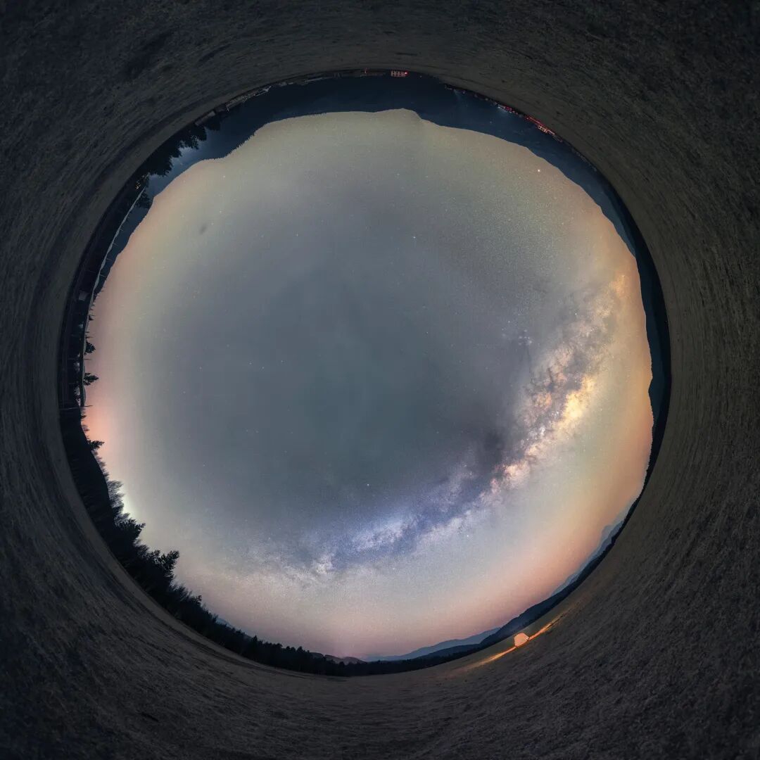 高原多变的天气让拍摄计划一再搁浅,总算天气满足,却又受月相影响,赶在月落和曙光之间大约一个多小时的窗口期,总算完成了今年第一个全景“天眼”。