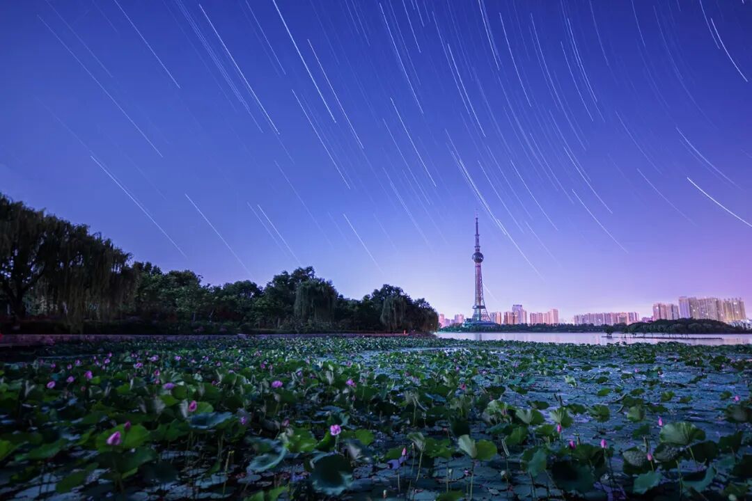 月光如流水一般,静静地泻在这一片叶和花上。薄薄的青雾浮起在荷塘里,叶子和花仿佛在牛乳中洗过一样;又像笼着轻纱的梦…… 塘中的月色并不均匀;但光与影有着和谐的旋律,如梵婀玲上奏着的名曲。我在焦作龙源湖这一片荷塘从凌晨一点拍到四点半,近四百张RAW格式文件。月亮很好,天空中星星运动,月光撒在荷塘里,树影随月亮移动。这是其中一个小时的一百二十张,我处理成延时星轨作品。