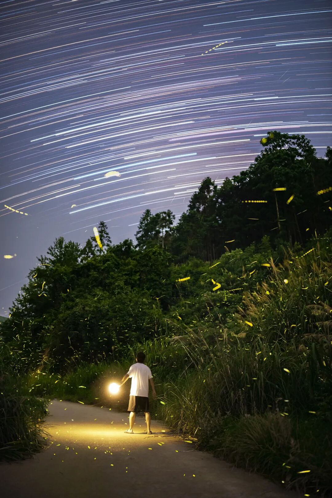 时隔一年,再次踏足这片山中秘境。在夜色中沿着小径往山顶走,身旁环绕着无数的金色精灵,律动着曼妙的舞姿。哪怕不打开手电,这点点萤火与头顶的星光也能为我照亮前行的路。走在这条山间幽径上,我不禁想起了鲁迅先生说过的那段话:“有一分热,发一分光,就令萤火一般,也可以在黑暗里发一点光,不必等候炬火。此后如竟没有炬火:我便是唯一的光。”愿大家都能成为自己的光,陪伴各自走过漫漫长夜~