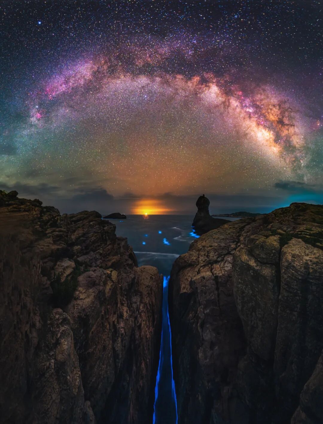 位于福建福鼎的台山岛,是距离中国大陆最远,公海最近,且有人居住的海岛。这里的海岸景色优美,每年5-6月份休渔期海上光污染较小,同时海岸通常会爆发蓝眼泪,是拍摄蓝眼泪和星空的最佳时节。