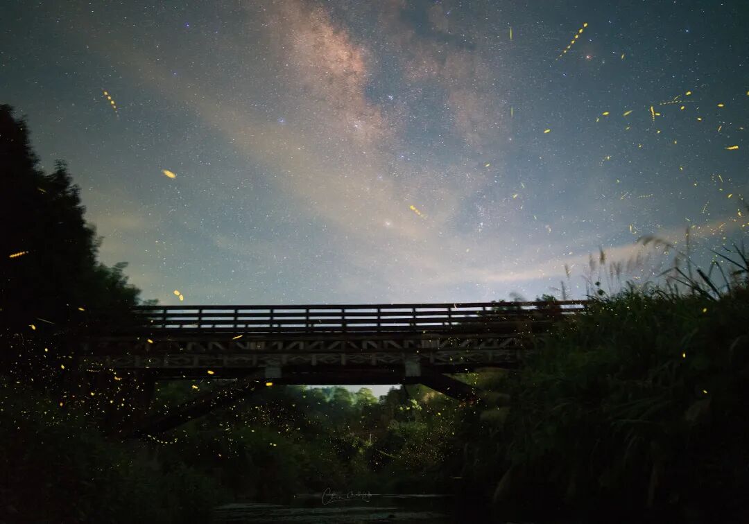 夏夜里最浪漫的两样东西,天上的银河与地上的萤火虫。银河流转,星空永恒,与地面生命短暂的萤火虫大相庭径。但盛夏里流萤飞舞,竟似天上的星星不小心坠落。