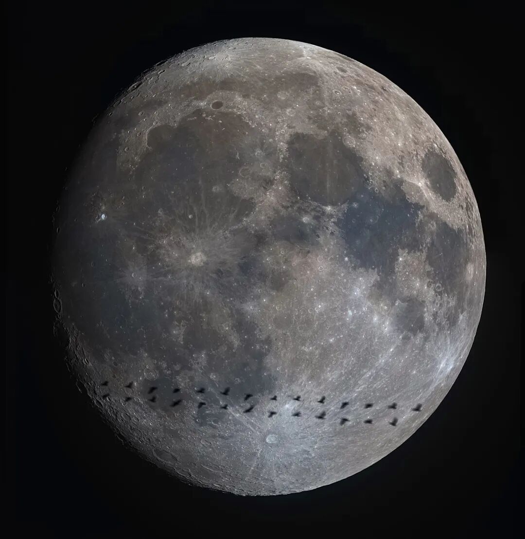 拍摄月面时,正好记录下一对“比翼双飞燕”凌月,不由想起白居易的《长恨歌》:在天愿作比翼鸟,在地愿为连理枝。天长地久有时尽,此恨绵绵无绝期。
