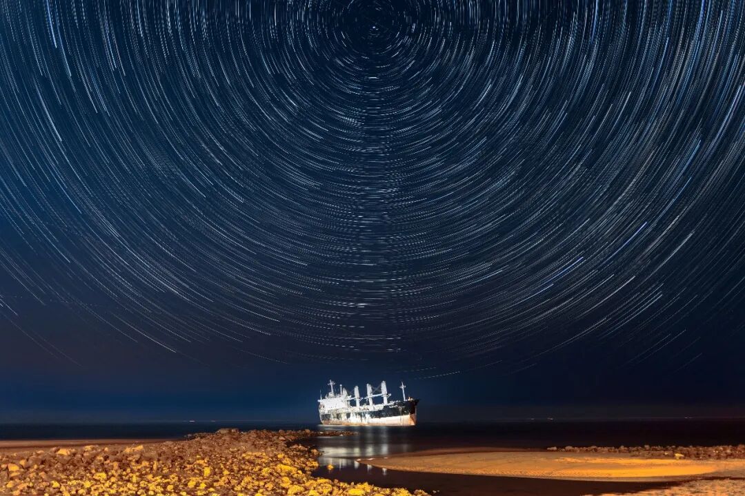 一直想拍一张星空和大海的照片,恰巧这艘布鲁维斯号巨轮因风浪搁浅海边,计划了很久的大海星空终于启动。在那一望无际的海洋里,盛满了布鲁维斯号的行色匆匆,它经历了无数的风浪,最终只能停靠在这片海域,星星像是要坠落深海,与游荡的鱼儿一起陪伴着巨轮。少年的征途是星辰大海,是诗与远方,而天空浩瀚,星光遥远,通过照片能让星空变得触手可及。