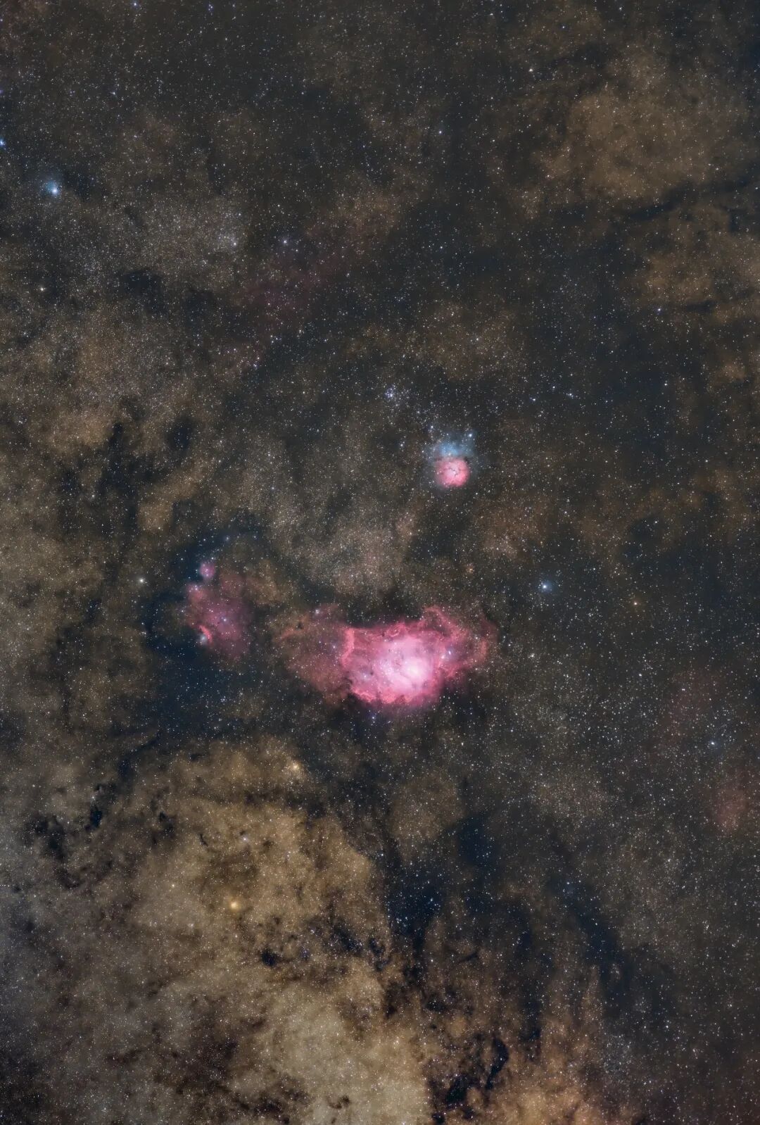 我总是喜欢仰望星空,星空让我联想到大海,无边无际。M20三叶星云和M8礁瑚星云就像是宇宙中的花朵,像星海上的岛屿,给我方向。他们就在那里。或许我不曾肉眼看见,但是我们知道,他们一直都在,星辰永远会指引我前行。