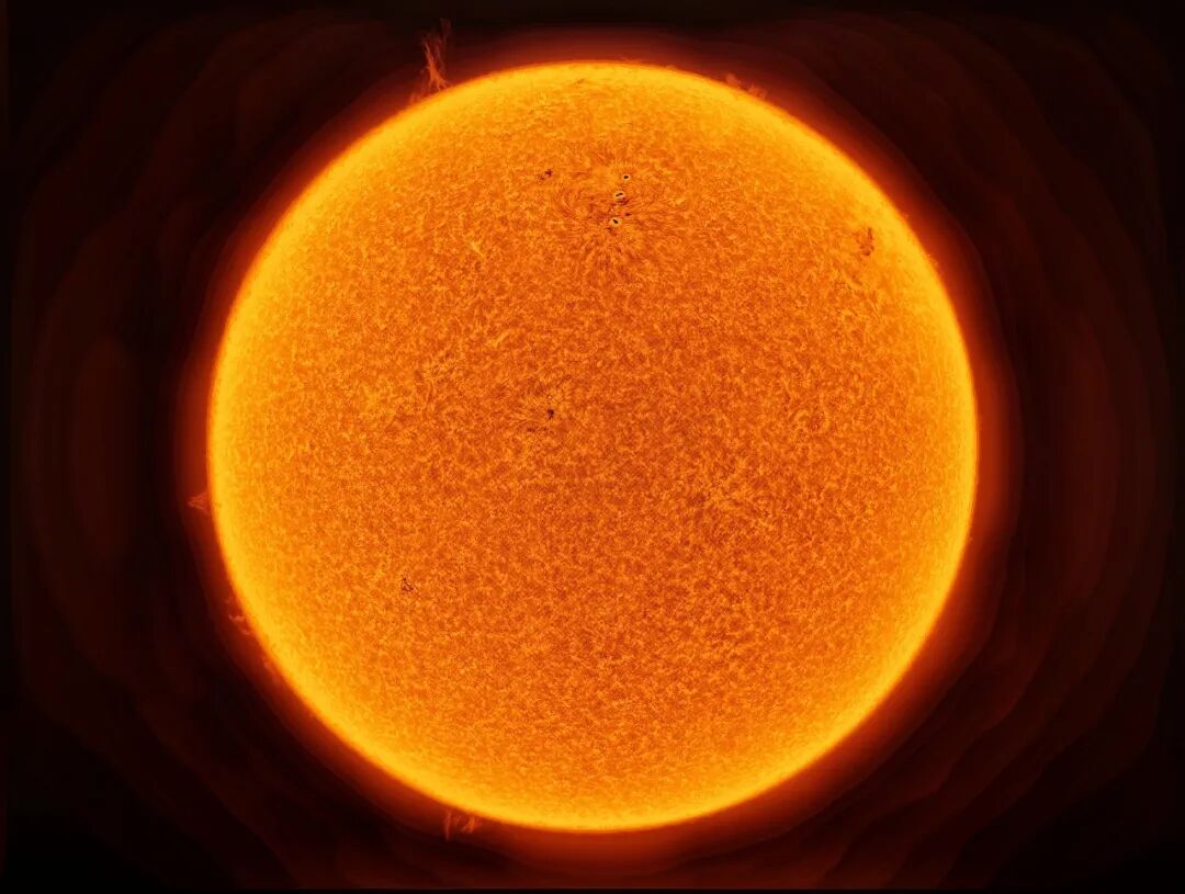 这颗离我们最近的恒星,表面绽放出耀眼的光芒,展现着其无与伦比的细节。太阳主要由氢和氦组成,在核心处持续进行核聚变反应。太阳风和太阳耀斑等活动也影响着地球的电离层和气候。