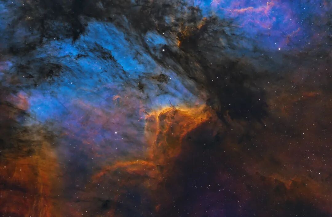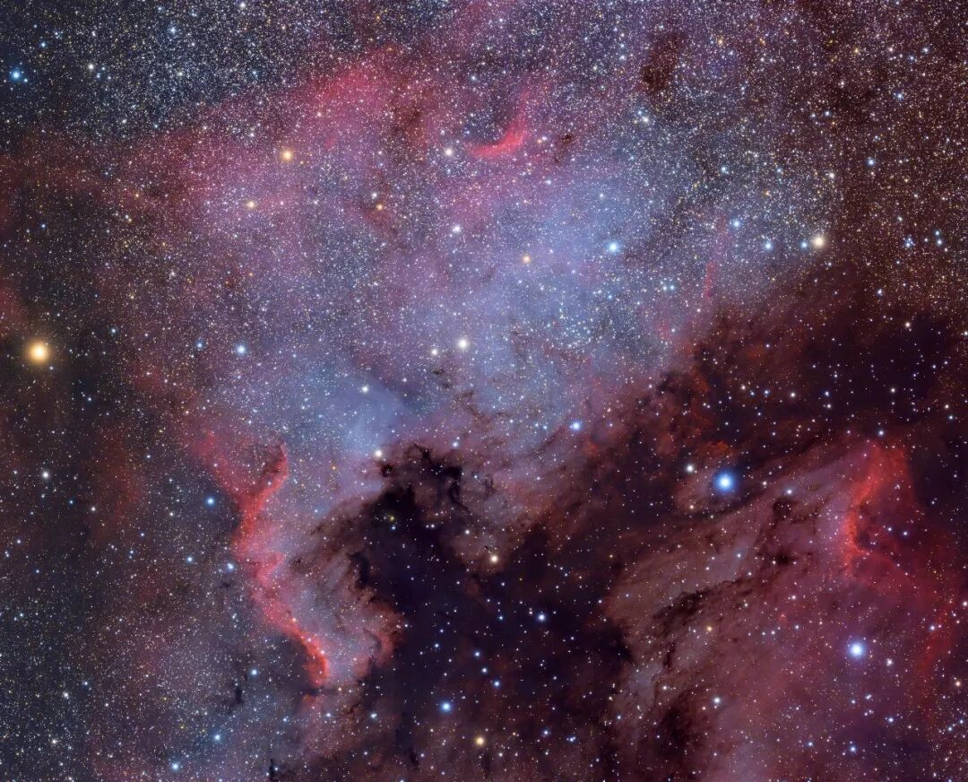 短焦望远镜下的北美星云,给人一种辽阔和壮丽的感觉,仿佛徜徉在无尽的星之海洋中。