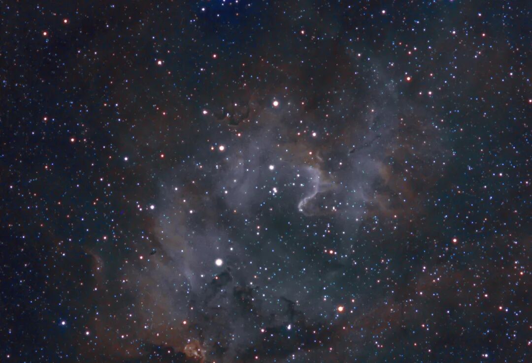 狮子星云(深空目标编号:SH2-132),是一个位于仙王座和蝎虎座边界处的微弱发射星云,距离约10000光年之遥,经长时间曝光叠加处理后,这个幽暗的星云呈现出令人惊叹的细节结构,足以让我们感慨宇宙之美。