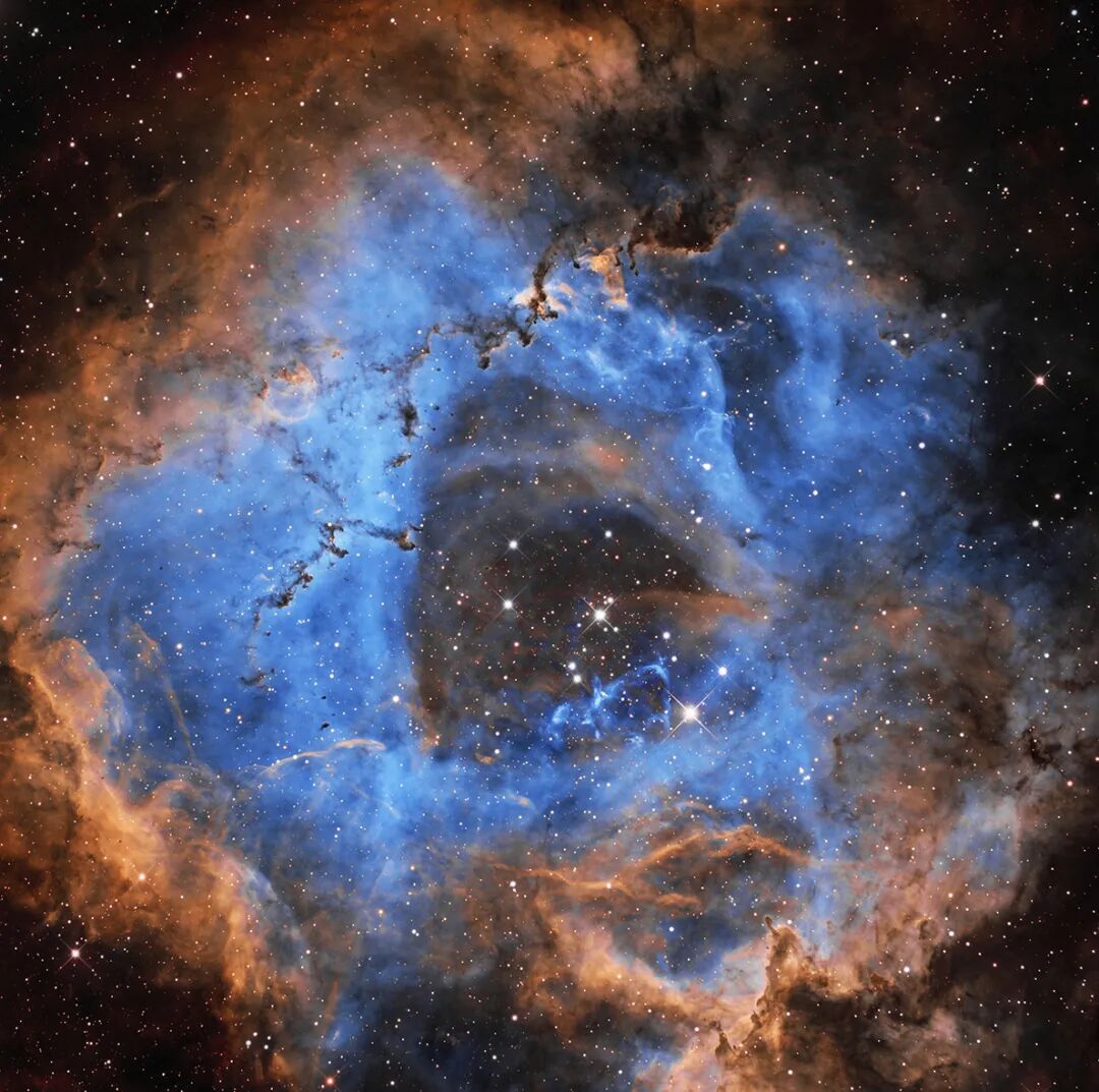 玫瑰星云(NGC 2237)是一个的巨大电离氢区,位于麒麟座一个庞大分子云的末端。该星云距离地球大约5200光年,直径大约为130光年。星云的质量估计约有10,000倍太阳质量。