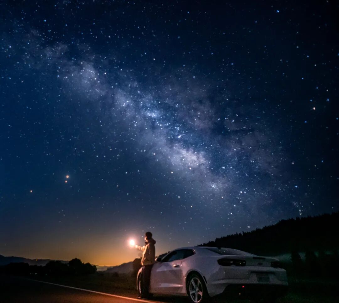 子夜时分的一号公路寂静无声,山谷尽头升起的璀璨银河便是此刻最美的风景。