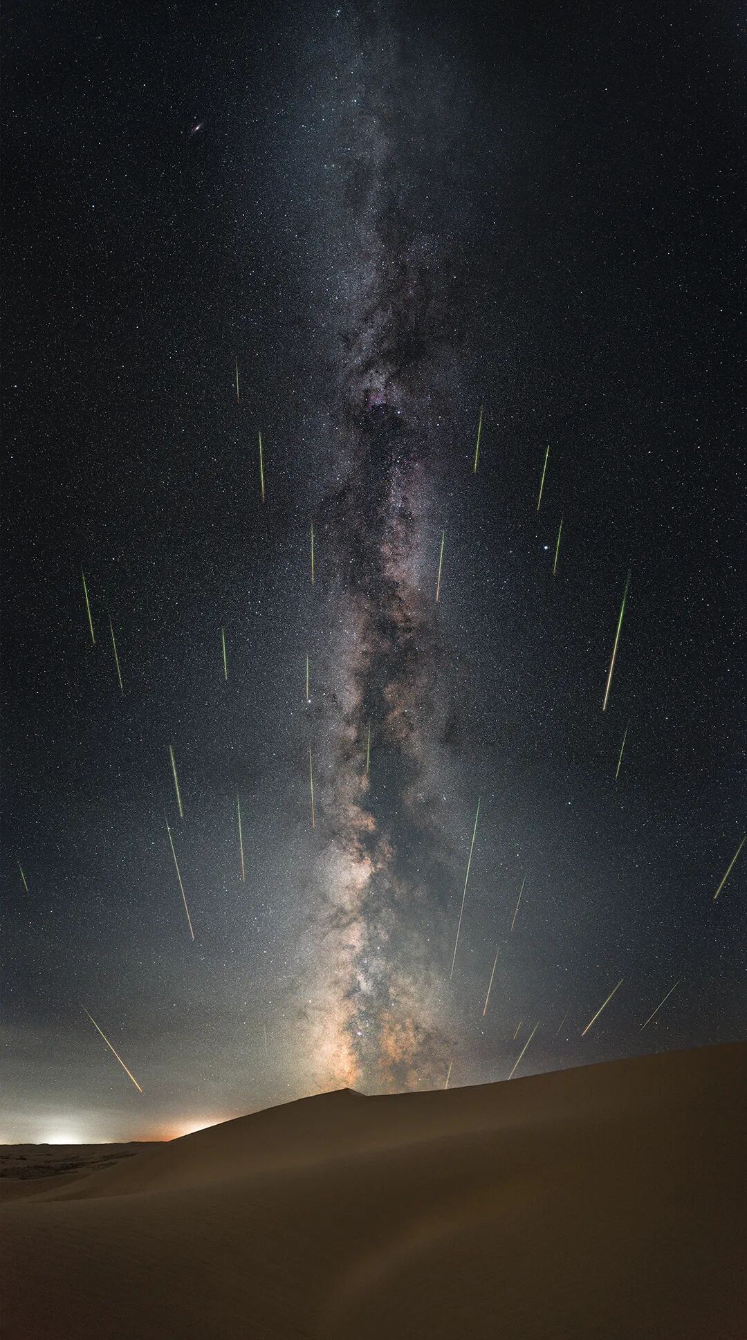 参数 / 银拱&地景:ISO5000,f1.8,30s,31张竖拍拼接;流星:ISO12800,f/1.8,13s,40张叠加