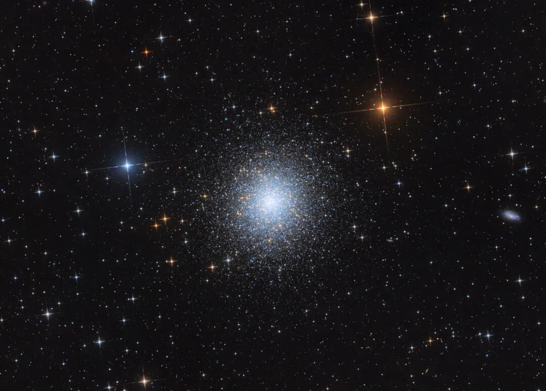 球状星团M13由成千上万甚至数十万颗恒星组成,外貌呈球形,越往中心恒星越密集。它们是银河系中最早形成的一批恒星,有约100亿年的历史。它也被称为“武仙座大球状星团”,是北天天区中最明显,最广为人知的球状星团之一,核心区域边长3光年的立方体内就有超过100颗恒星。M13包含约100万颗恒星,距离我们25,100光年。