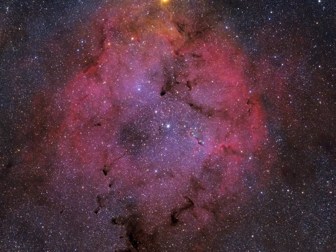IC1396象鼻星云是一个云气和尘埃极其丰富的电离氢区,其内部含有很多新生的恒星。