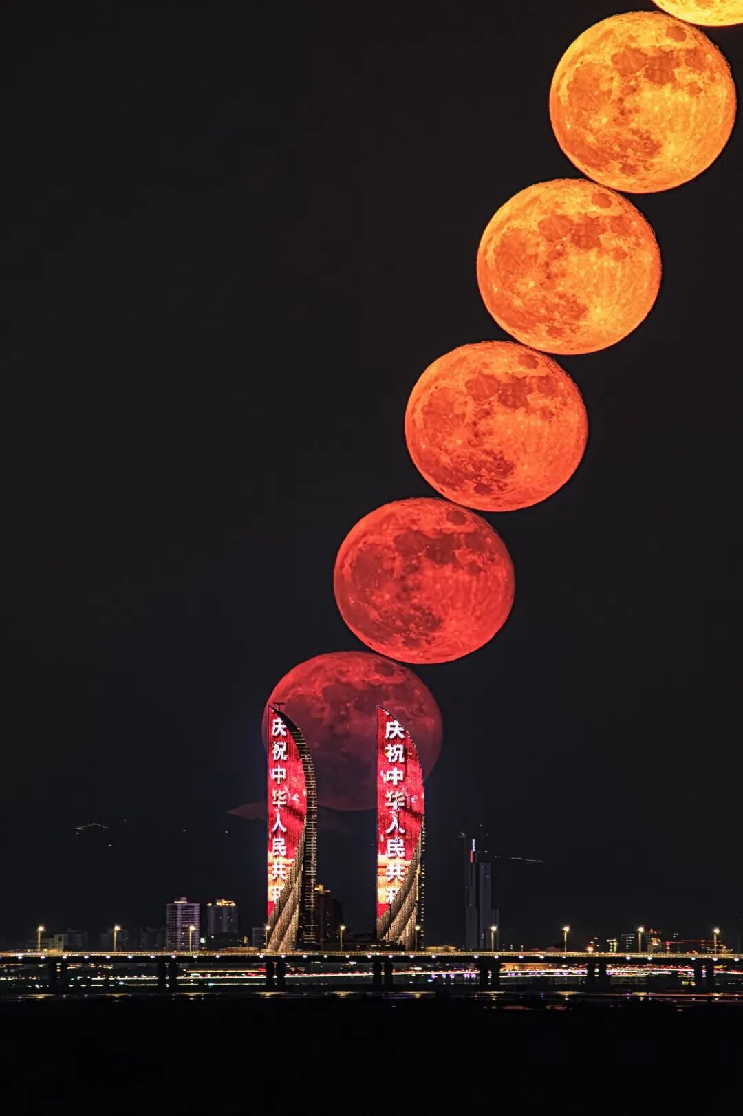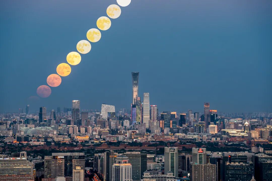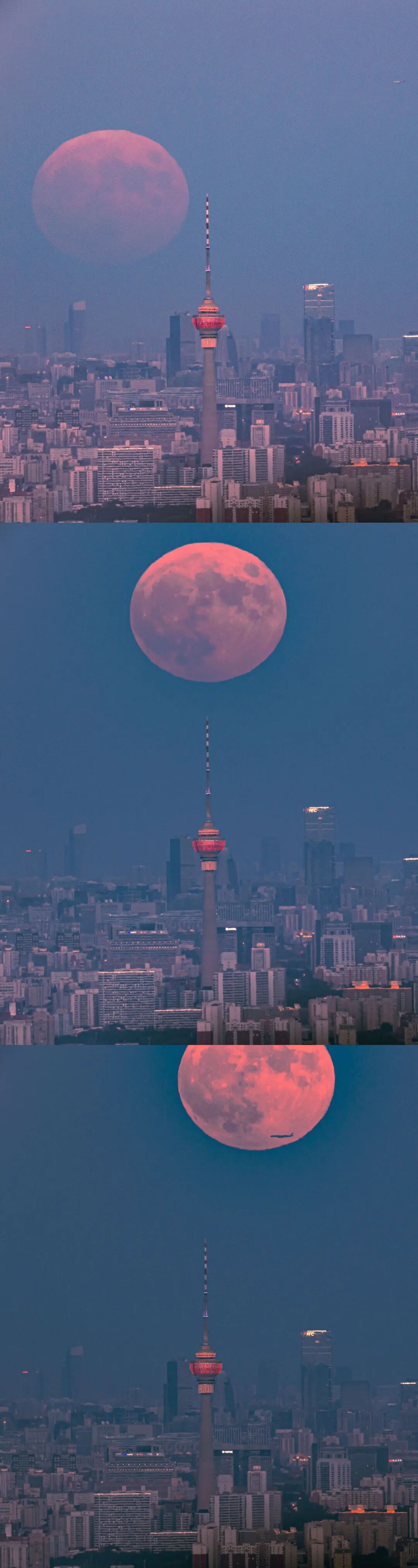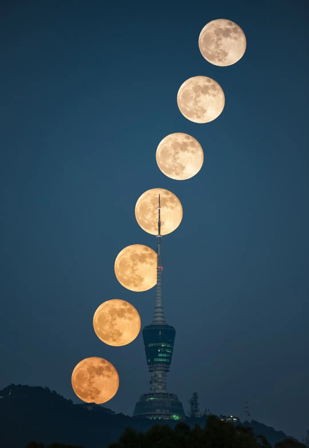 在城市的尽头,一轮圆月跃出地平,经过中央电视塔塔尖,不断爬升,提醒着城市里的人们加快归家的步伐。我按下快门,有幸记录下近些年月亮最圆的中秋月升。