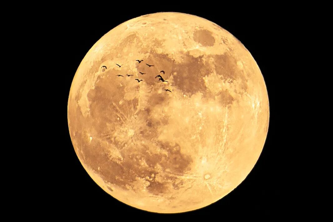 又是一年中秋时,惯例和小朋友一起观察记录,惊喜的是相机第一张就抓拍到鸟群飞越月亮,真·可遇不可求。