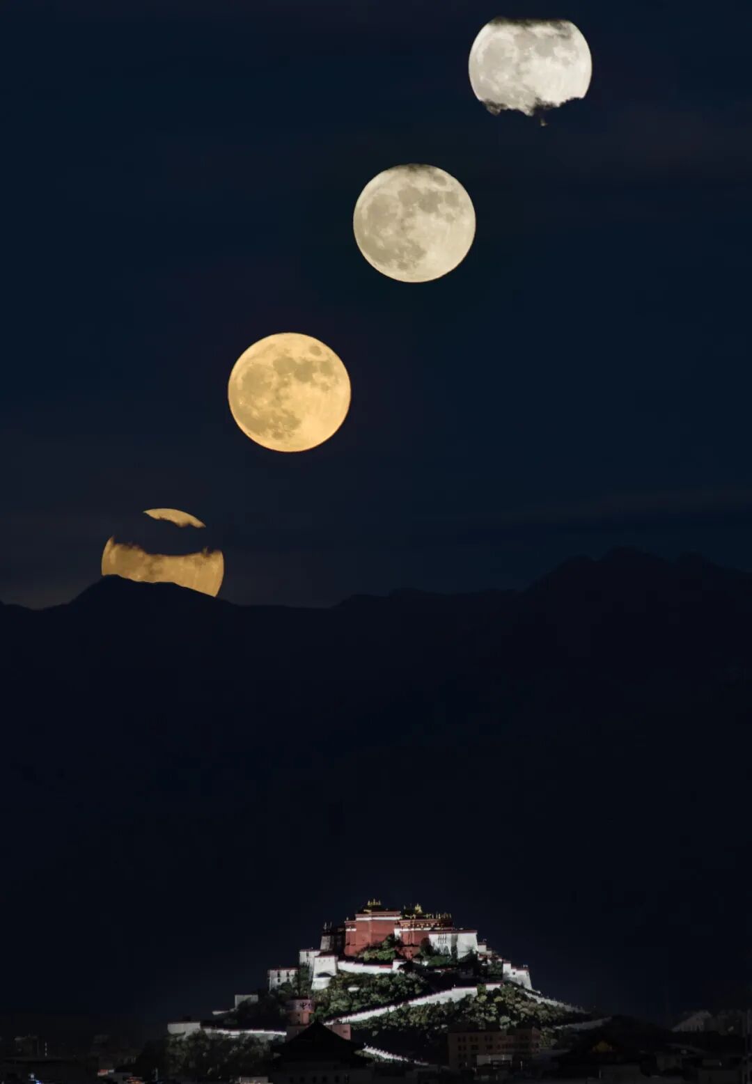 通过巧摄规划了机位,但踩点的时候发现具体位置在西郊的一座野山上。于是花了半小时艰难地向上爬,最终在一小块平地上架好了机位。所幸天气给力,半小时后,中秋的超级满月缓缓从东山升起。巧合的是,此刻南边的拉萨河畔恰逢有烟花在绽放。我坐在山上一人静静目睹着这一切,感到美妙的同时却又不免有些落寞。这幅布宫中秋悬月图想送给地上的所有人,愿天下人中秋快乐。
