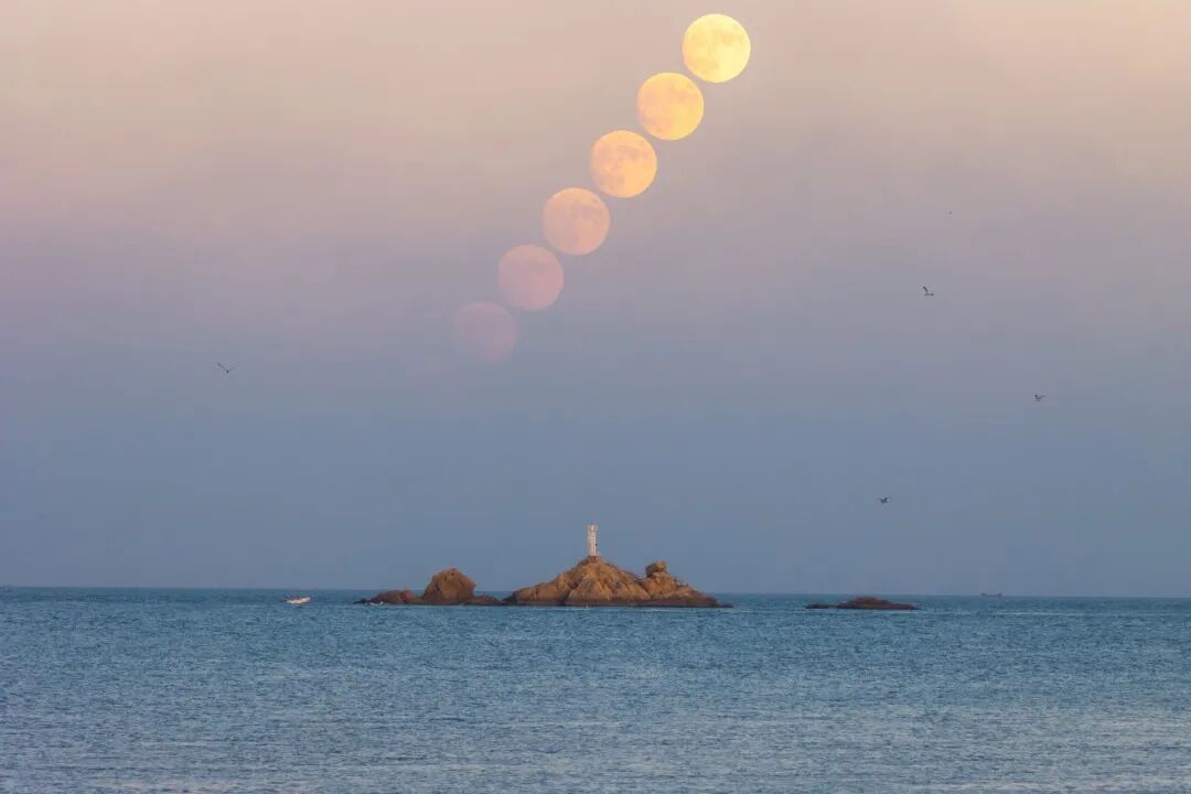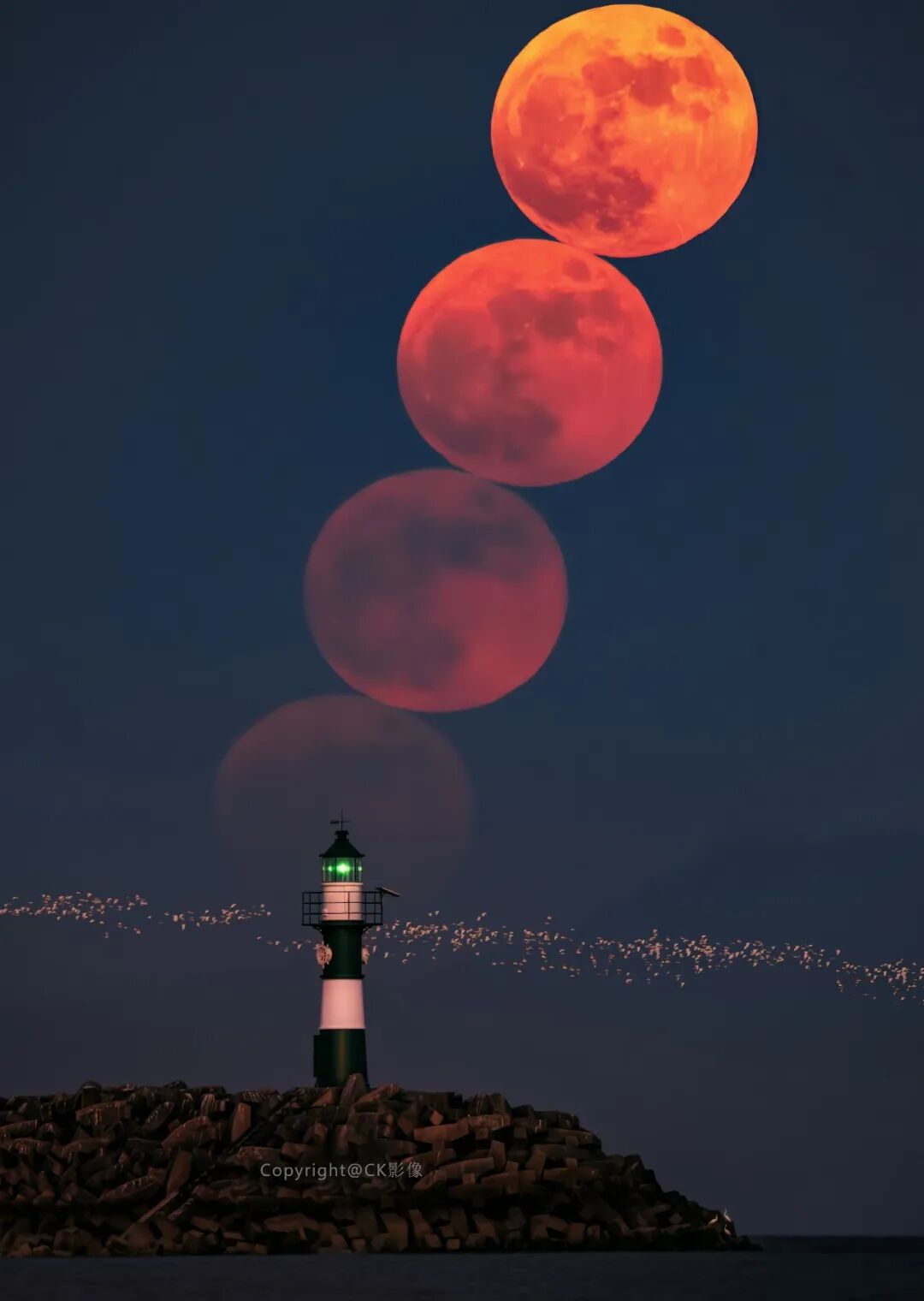 2023中秋之夜,通过前期科学计算我记录到了月亮刚好从海边灯塔升起的画面以及有趣的偶发决定性瞬间:一群“归家”的飞鸟与灯塔下方“驻守”的三只孤鸟形成了动静对比的画面,这不禁让我联想到了每年的中秋佳节家家户户团圆相聚,但也仍有坚守在工作岗位默默耕耘和服务的家国卫士。