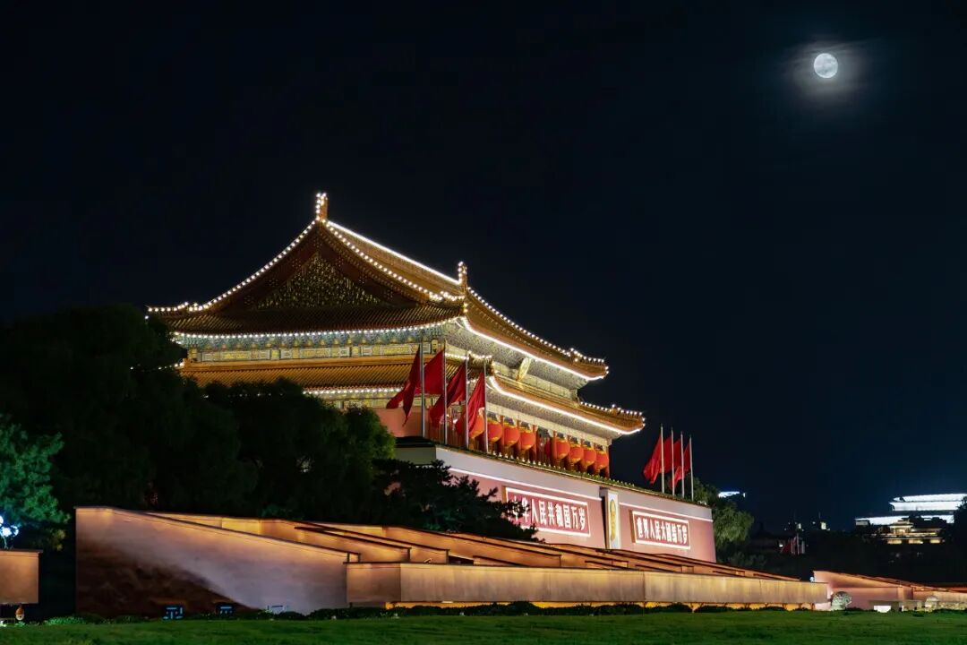 国庆之夜,明月带着月华从天安门东边缓缓升起。