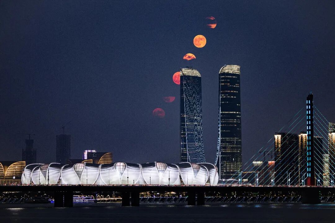 杭州之门不仅是杭州新建的城市地标,还是第十九届亚运会主赛场配套设施之一。十公里开外望去,高耸的双子塔宛如一支巨大的亚运火炬,点亮了日月的光辉。