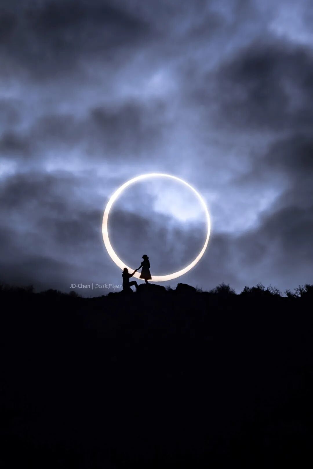 这个拍摄计划开始于两周前,准备求婚的男主人公委托摄影师为他们拍摄这次日环食求婚。于是在北美时间10月14日早上,摄影师在距两人超500米外的位置进行拍摄,并通过手机远程沟通。在即将环食阶段,天空开始起云了,但运气很好,这些云恰好充当了“减光”滤镜,最终成功拍下了男主人公想要的梦中情图——日环食求婚照,并且女主也回答了“Yes!”