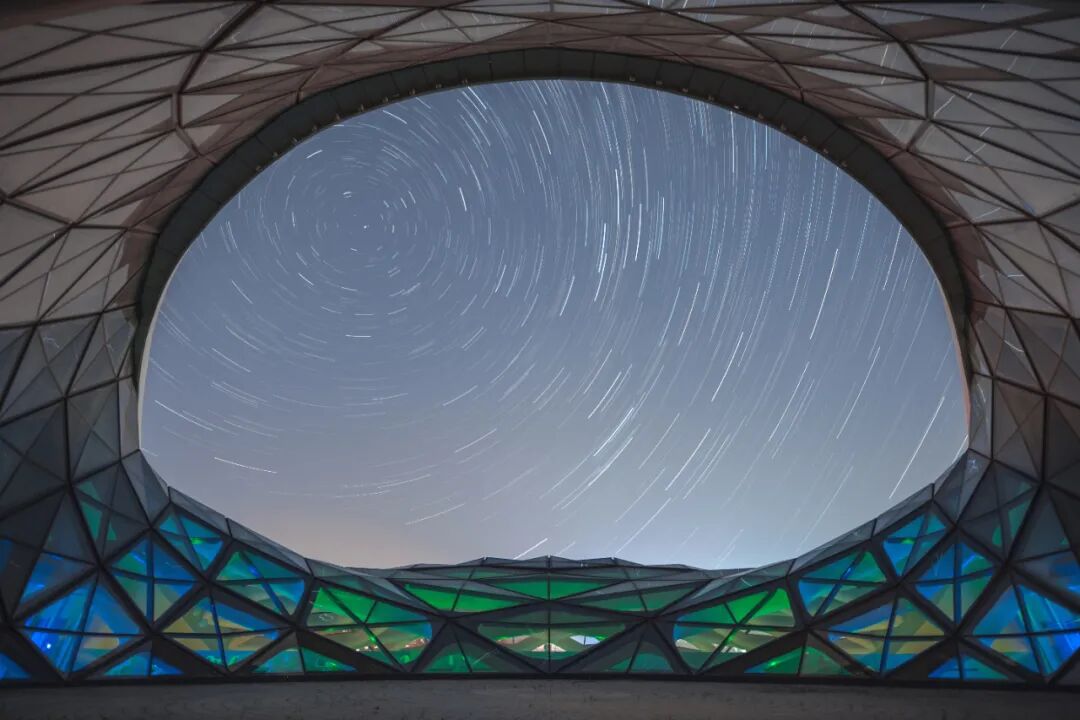 参数 / 背景:14mm ,F1.8,ISO 3200,星空赤道仪曝光1分钟,地景关闭赤道仪,共126张拼接;流星:6机位,共选用238+张群内流星照片对齐星点叠加