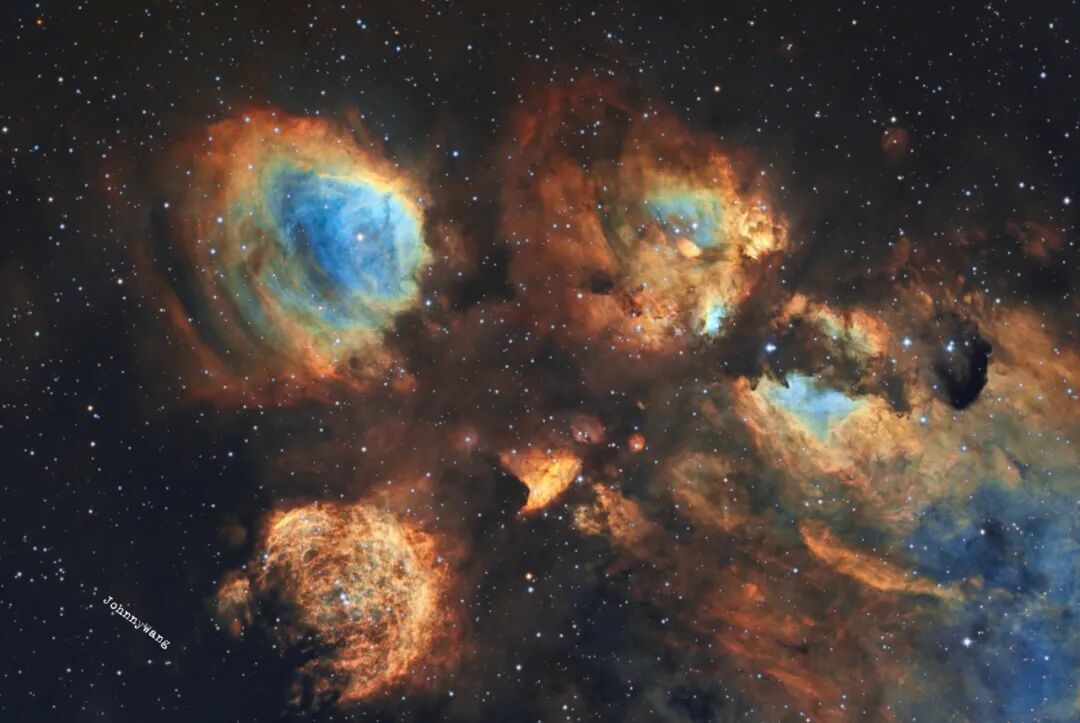 猫掌星云位于天蝎座,距离我们5,500光年,是银河系内一个著名的发射星云,由于外形酷似某些动物脚掌而得名,有时也被称为熊掌星云。同时,它也是个恒星诞生区,在过去的数百万年间已经诞生出了质量比太阳大十倍的恒星,它红色的辉光来自大量电离的氢原子。这幅图像用窄带拍摄并合成“哈勃色”,但由于窄带的星点往往发紫,色彩也比较单调,所以用RGB的星点作为替换。