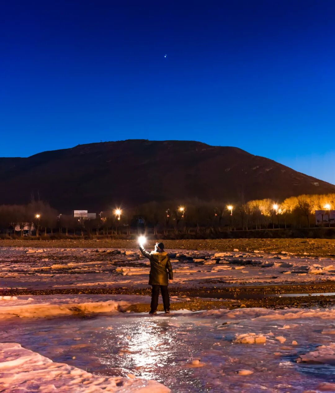 木星土星相合,两星距离仅仅0.1度,这是自1623年以来最近的一次,真是百年一遇的难得景象,而下次再想看到它们如此接近就要等到2080年了。站在海冰上,为宇宙中的兄弟相逢点亮一盏明灯。