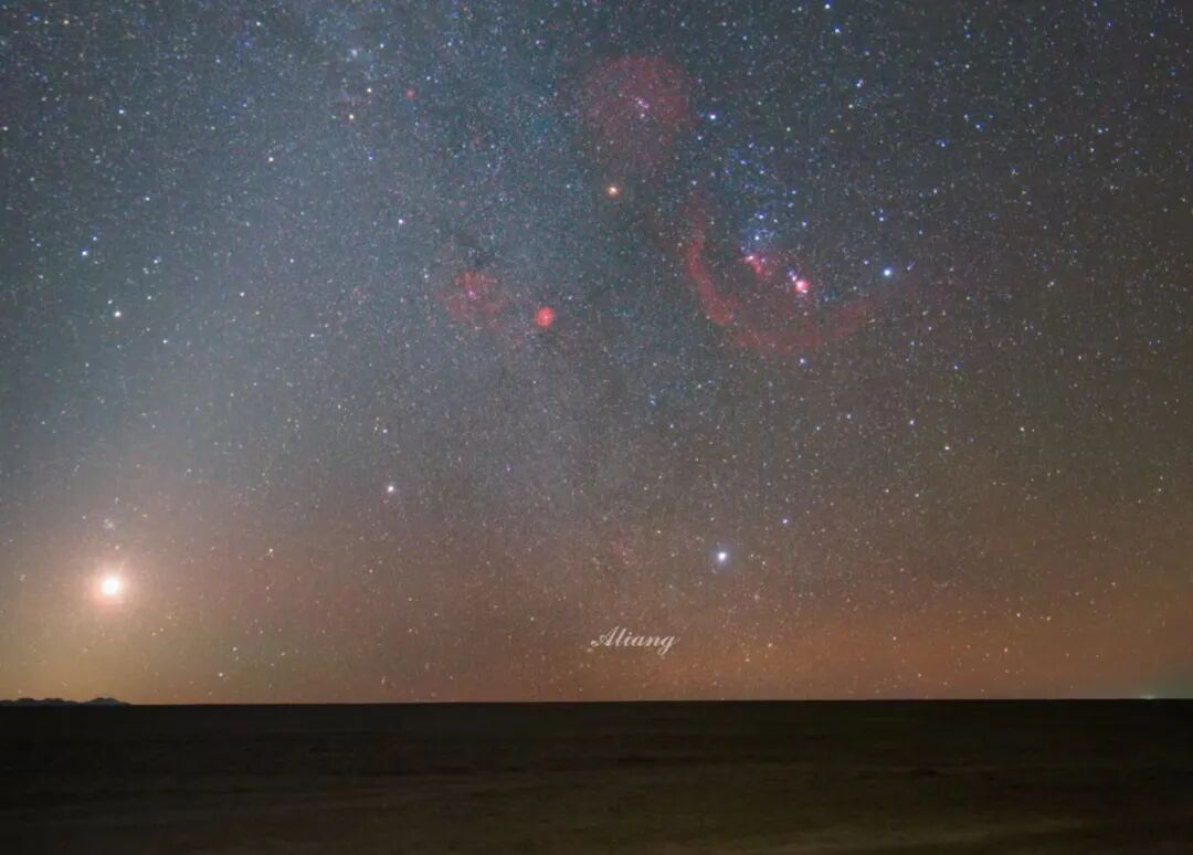 凌晨五点,猎户从地平线升起,紧接的是伴随黎明到来的金星,昆特依难得安静了下来,没有了凛冽的戈壁风,格外静谧。