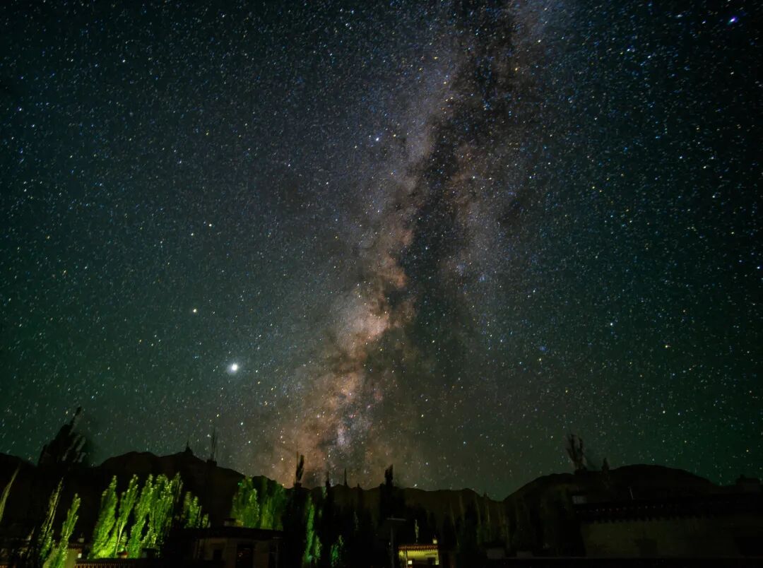 在扎达土林下的扎不让村,观星条件非常好,满天的星星在眨眼睛,乳白色的银河清晰可见,美得令人难忘。