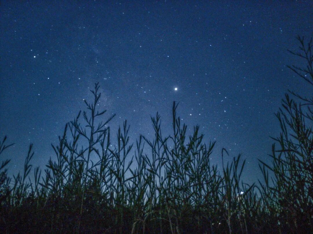木星低悬在庄稼之上。拍这张的时候差点被蚊子吃了。