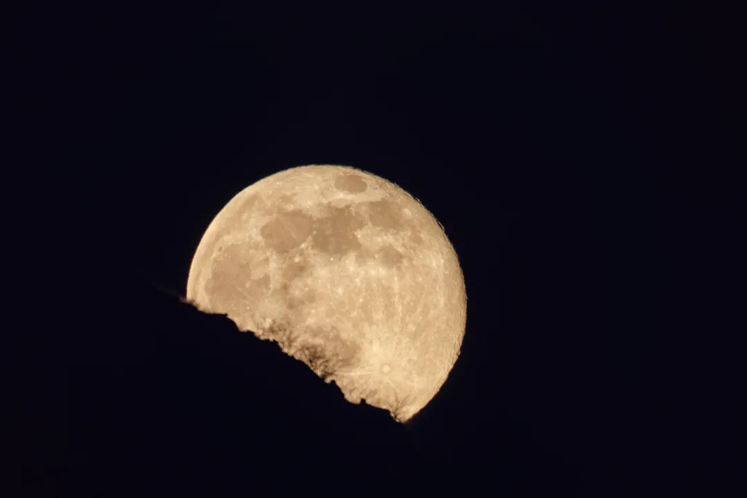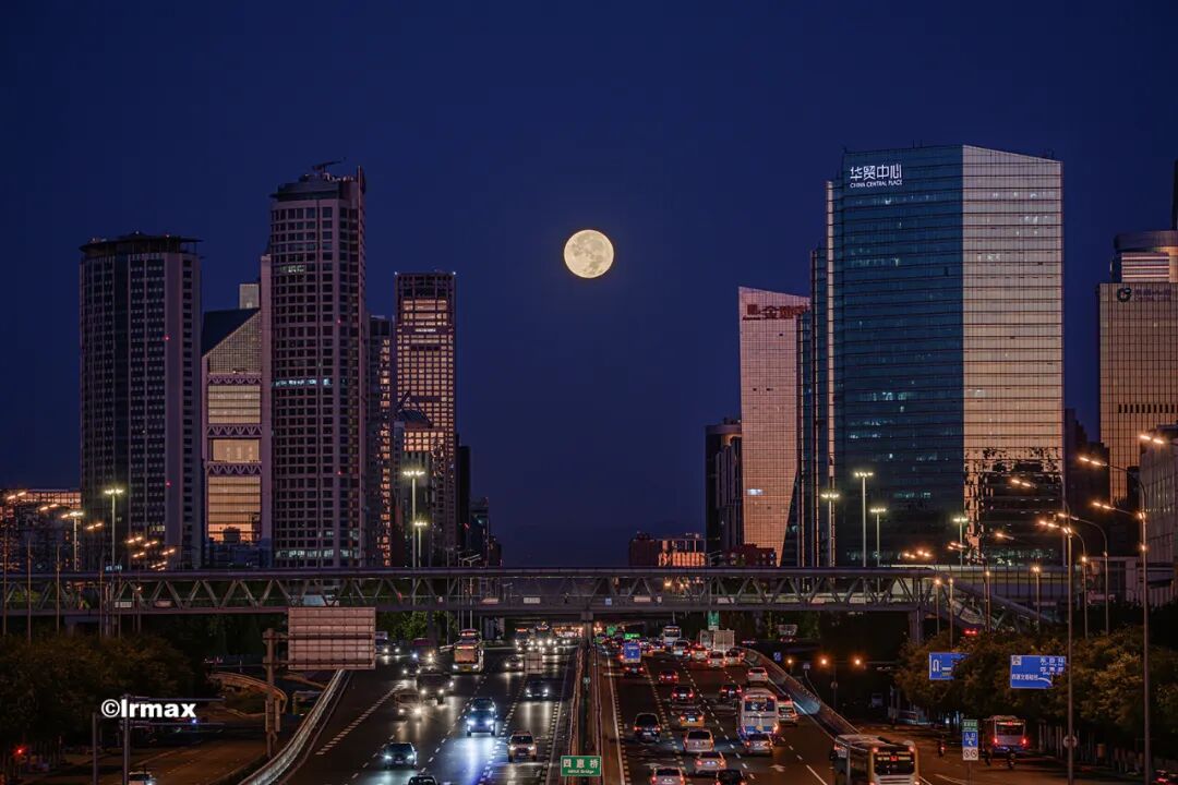 在灯火通明的市中心,只有月球和木星比较显眼。错过了最佳观测时机,现在它们之间隔得有点远了。