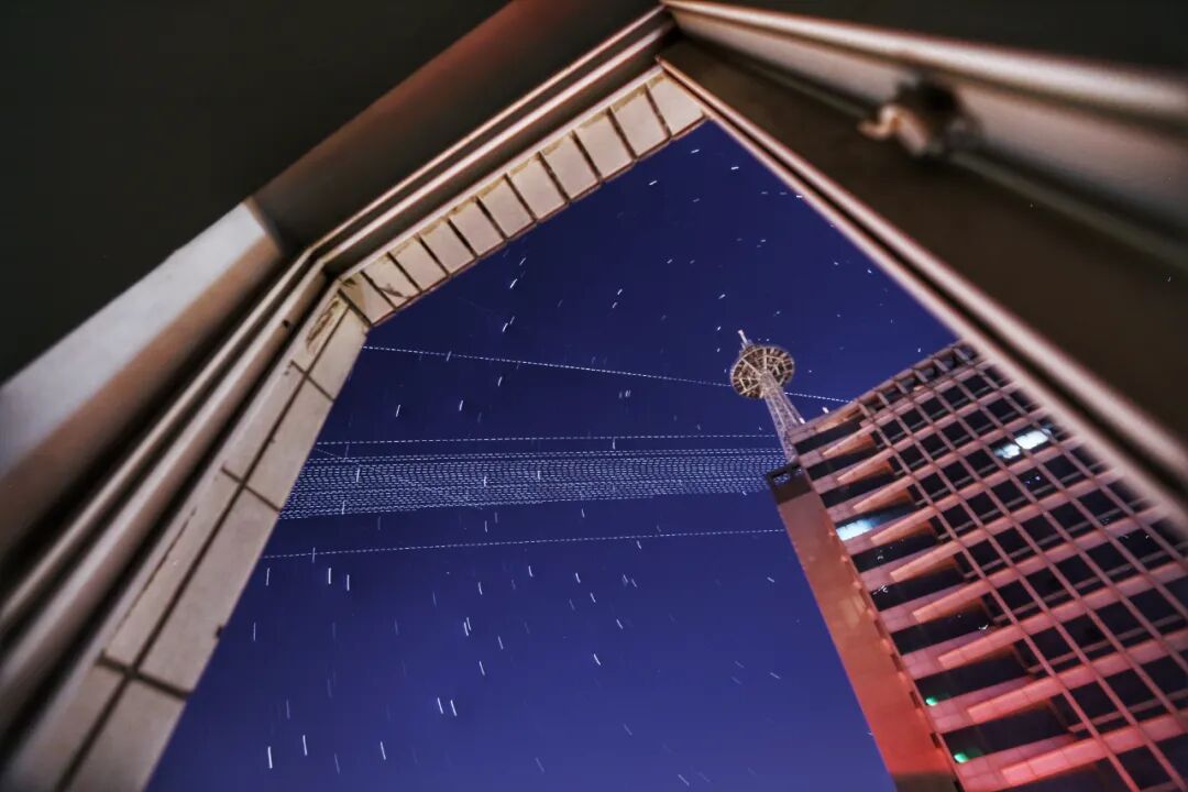 2020年2月18日清晨5:58–6:08分,星链卫星群过境北京上空,特别难得的天气、角度、时间俱佳观测机会。按照相关科普文章提示,4:30分我就爬起来了,为了不惊扰楼下24小时值守的社区工作防疫人员,就在家中楼道的窗户进行观测与拍摄。第一次拍摄星链,10分钟之内,几十颗卫星,排着队依次飞过京城上空,感觉很震撼!感叹人类的科技进步!我们也要迎头赶上!