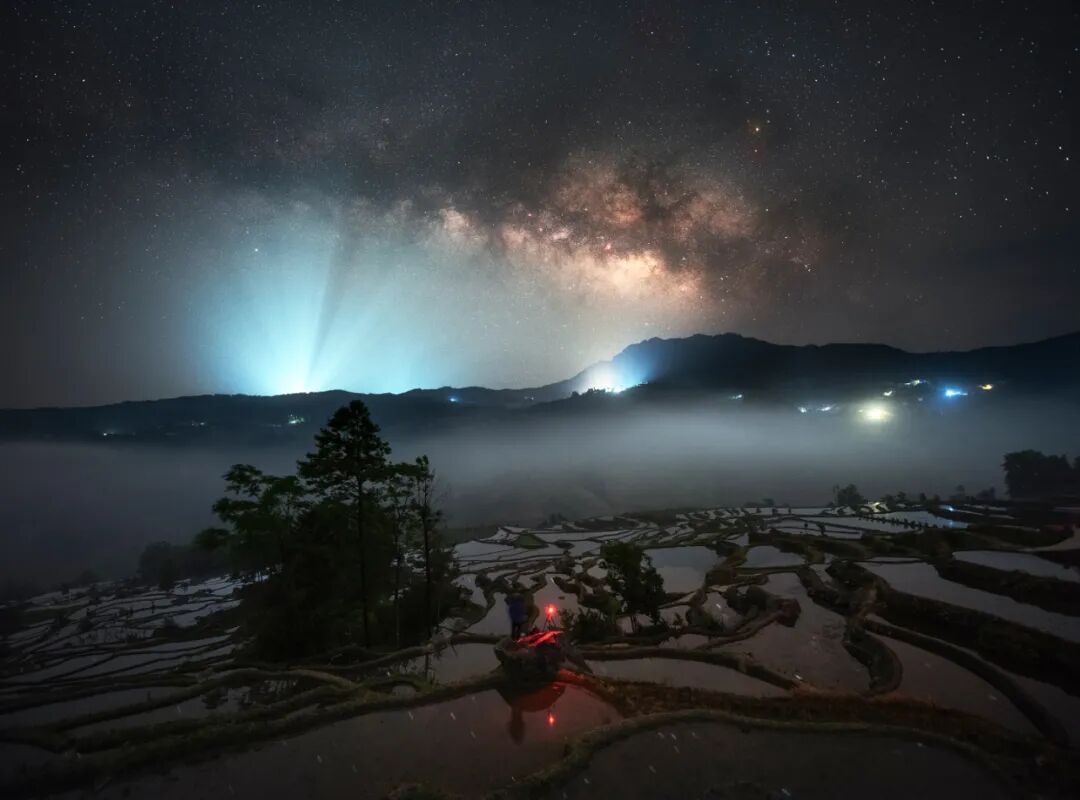 再一次来到元阳拍摄星空,这一次的光污染感觉比以前厉害了很多,我们来到一个僻静的小村庄,顶着不断上下翻滚的云海拍摄,终于在有限的(云洞)机会里拍到这张云海梯田星空作品。