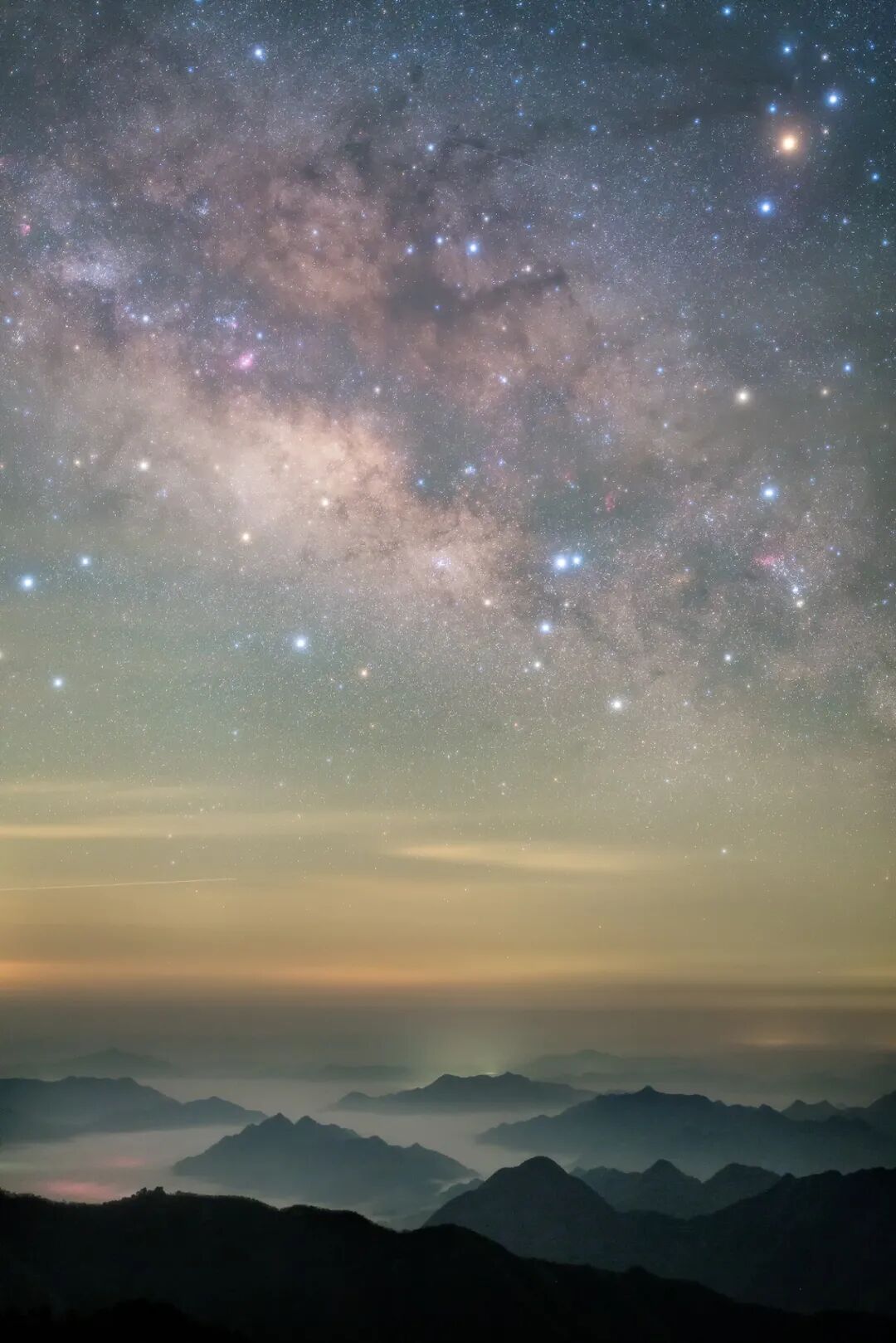 银河升起时与山脚下云海交相辉映的绚丽夺目,星夜之下,静静地看着云海弥漫的荒野和远处山河的轮廓,此刻胜过一切。