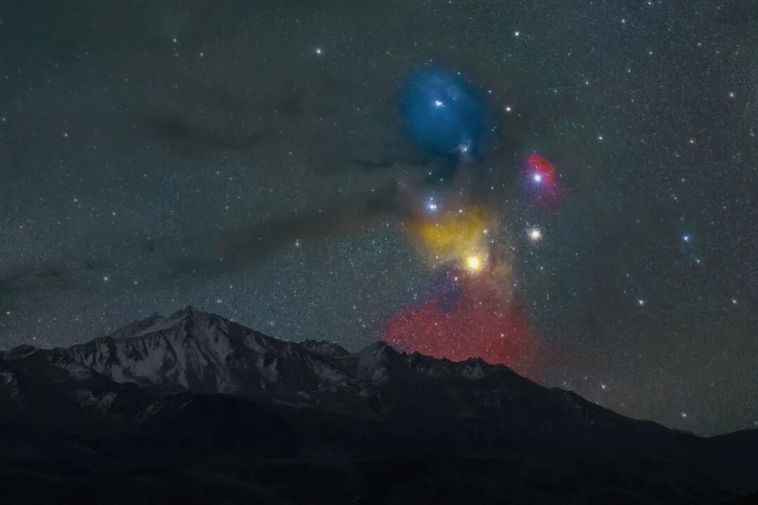 大概是两年前第一次看见天蝎座调色盘的图片就被它所深深吸引,也是从那时起拍到调色盘就成了之后的两年都会纳入当年的拍摄计划的拍摄目标,也终于在上周,在川西蹲了两个通宵才等来天气好转,在第二晚凌晨拍到了它,天蝎座调色盘从山峰上空升起,点缀了整个夜空。