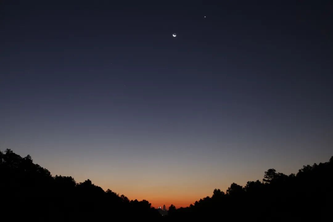 在拍完一整晚的英仙座流星雨后,迎来了新一天的黎明,恰是金星伴月,可谓收获满满。