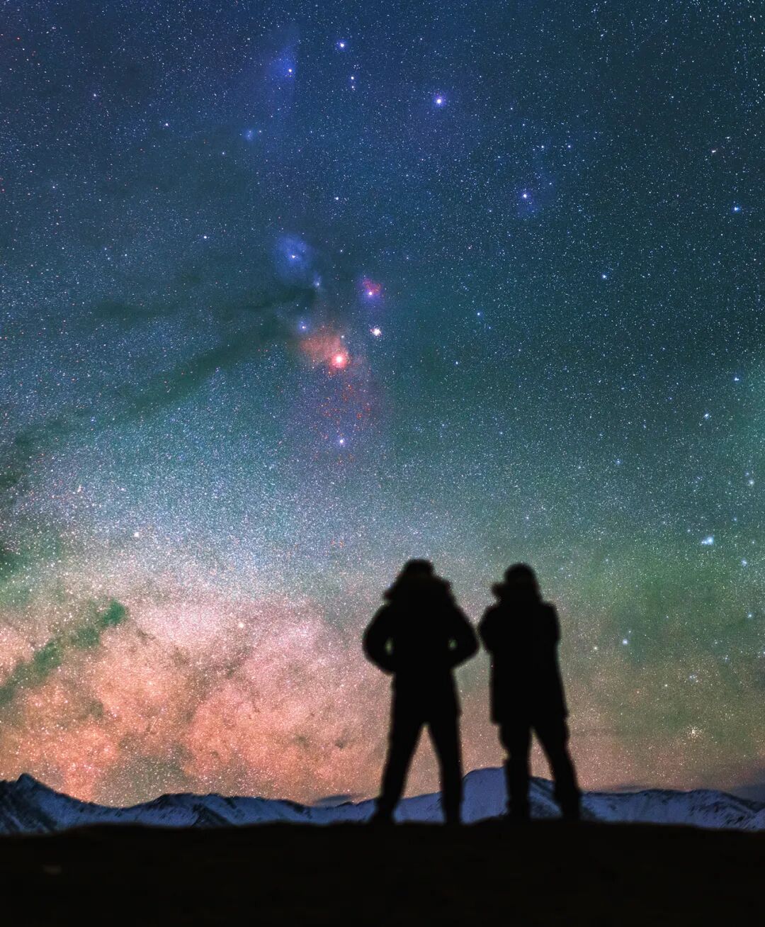 春季夜晚,遥望天蝎座调色盘从雪山缓缓升起。