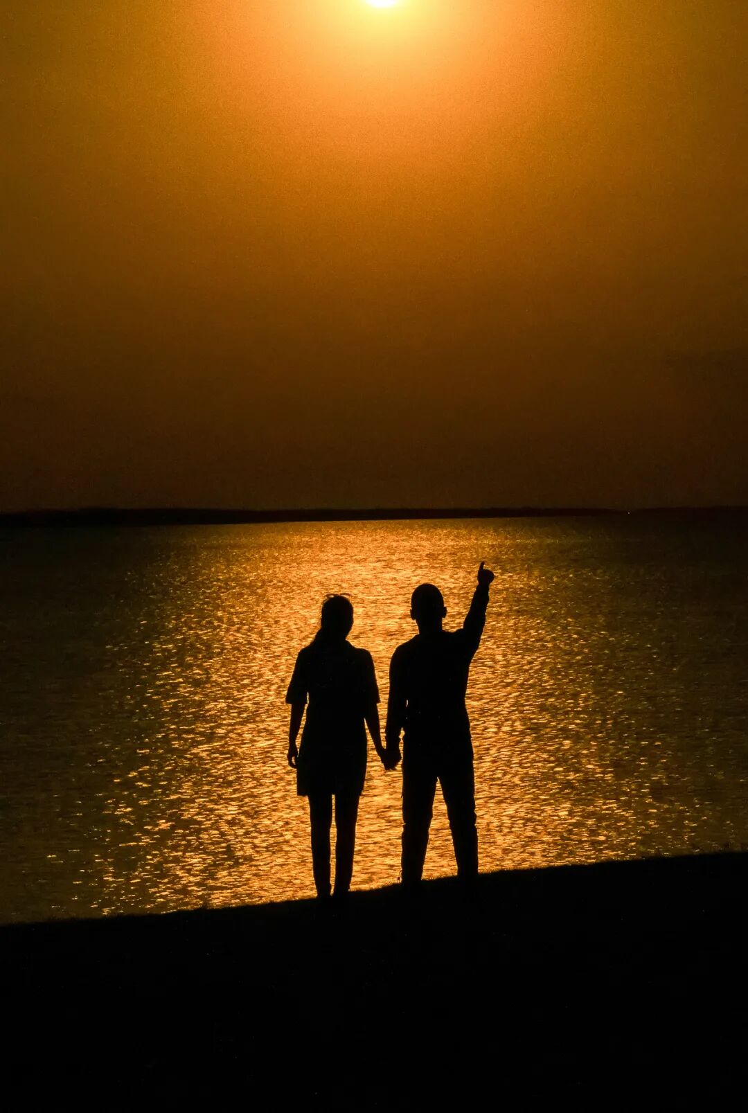 轻柔的月光如流水般倾斜在湖面上,此时一对恋人散步在浪漫的夜色中,他们望向此时此刻的超级月亮,不禁停下脚步!