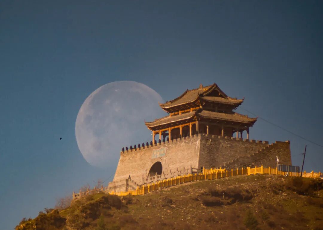 五一劳动节的清晨,当第一缕阳光洒在松潘古城之时,月亮从修建在西山顶上的松潘古城西门城楼上缓缓落下。没有长焦镜头,便使用PVC管制作了一个等效焦距1000mm的镜头外接Olympus E-pl1微单拍下了这个难得的场景。虽然画质比不上专业镜头,但也别有一番体验。