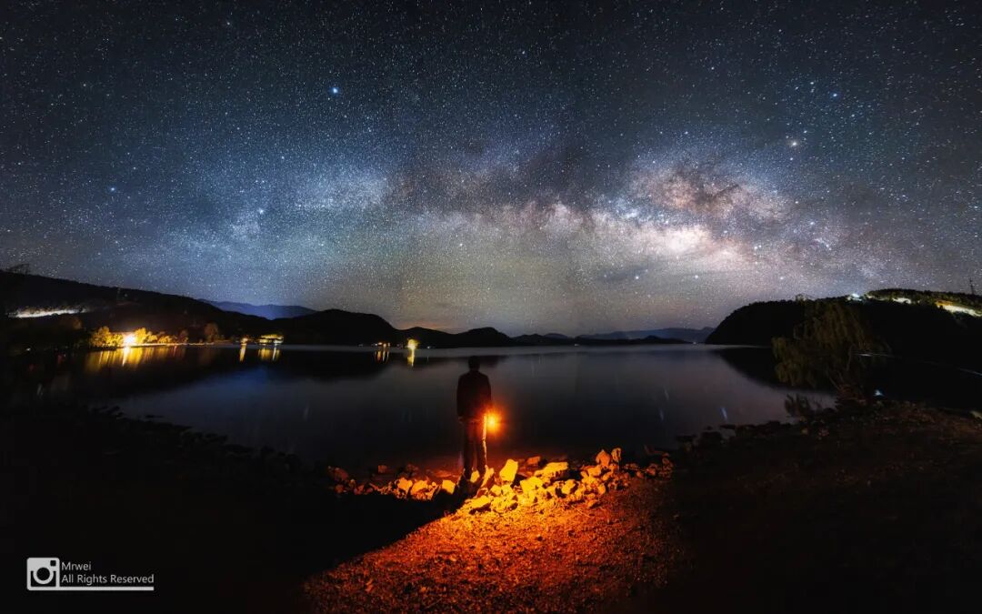 参数 / 银河:10张叠加降噪,13s,f2.8,ISO8000;地景:8张拼接,60s,f2.8,ISO2500;人物:20s,f2.8,ISO5000