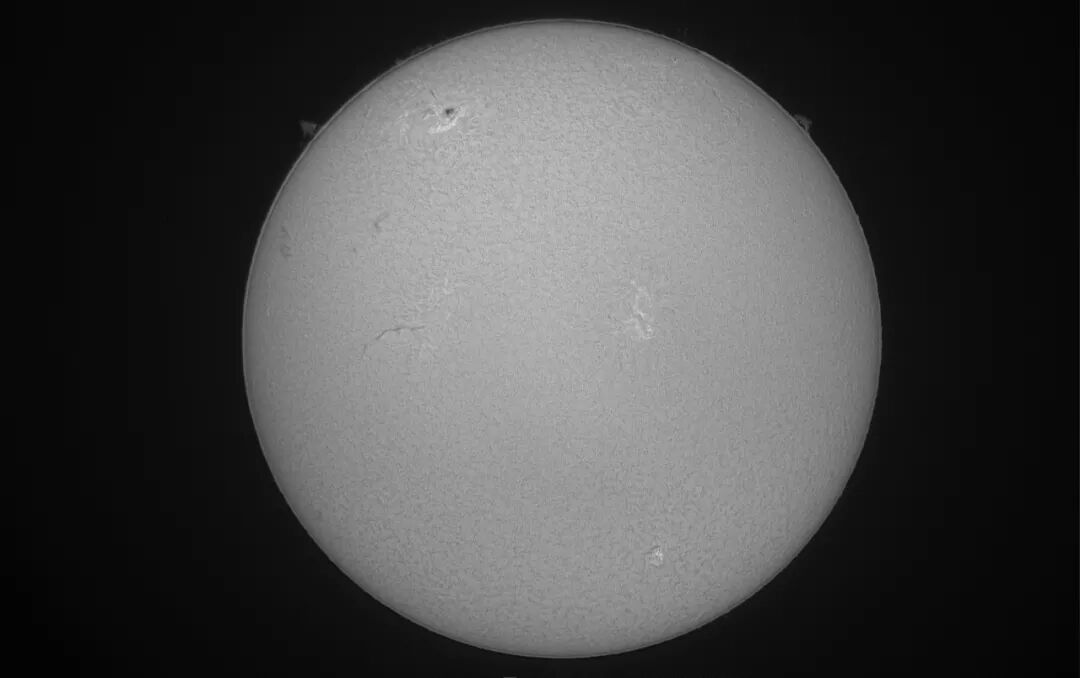 近期太阳日面图像,感觉日面比较“脏”,黑子、日珥比较常见,这次还看到一个伞状日珥,比较特别,可见太阳活动比较活跃。