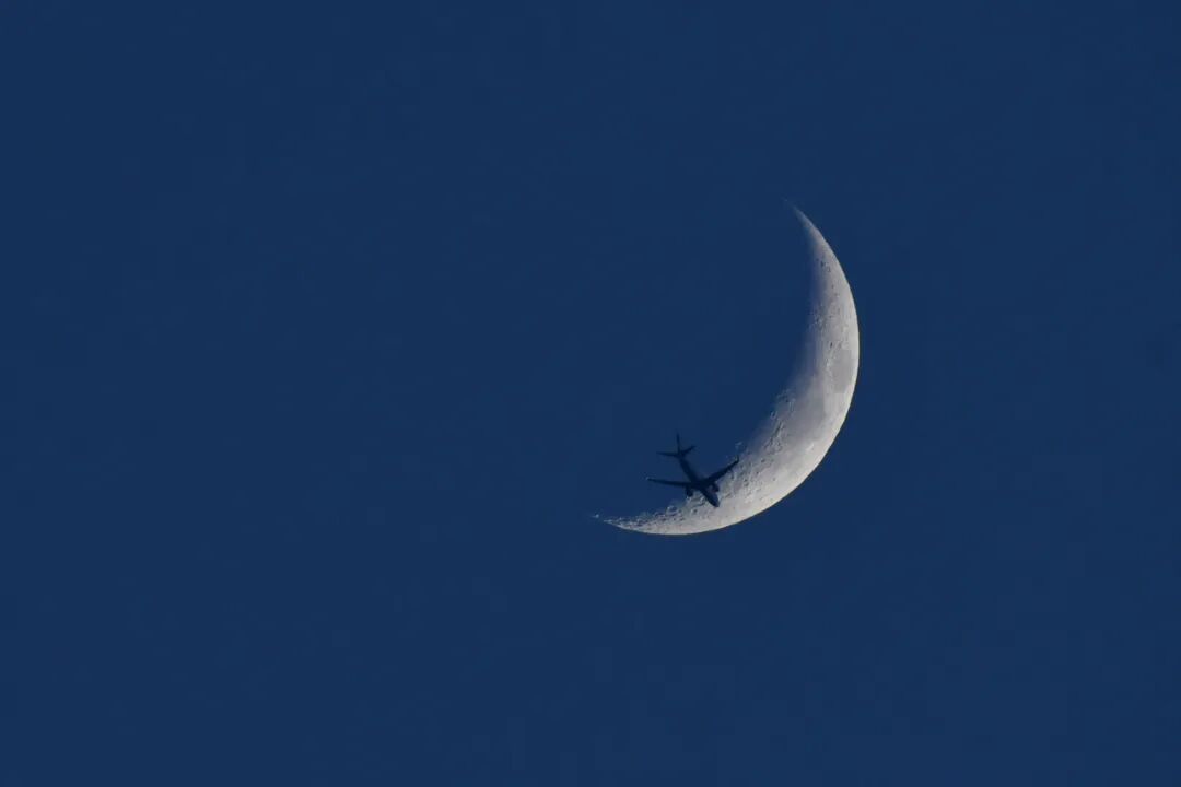 拍月亮的时候正好一架飞机飞过,赶紧连按几下快门,得到这张飞机撞月图。