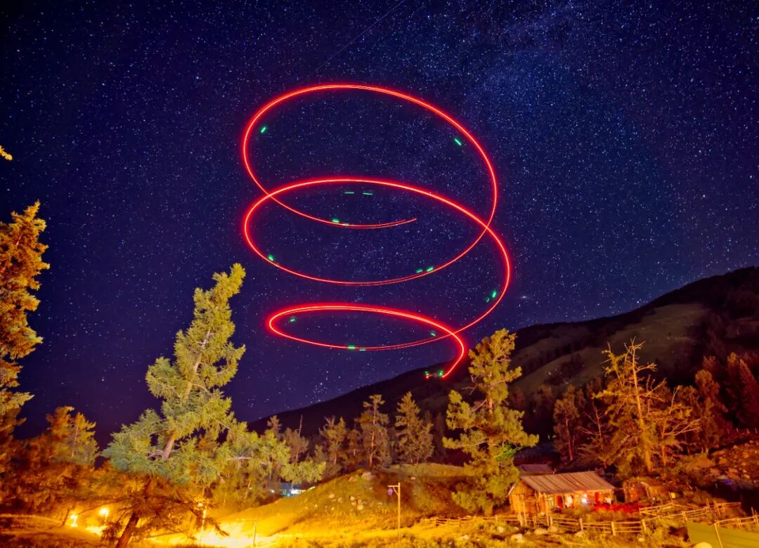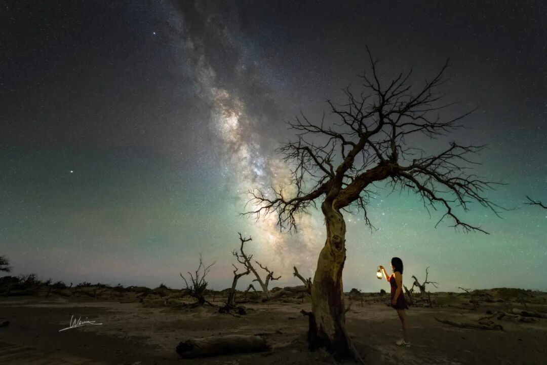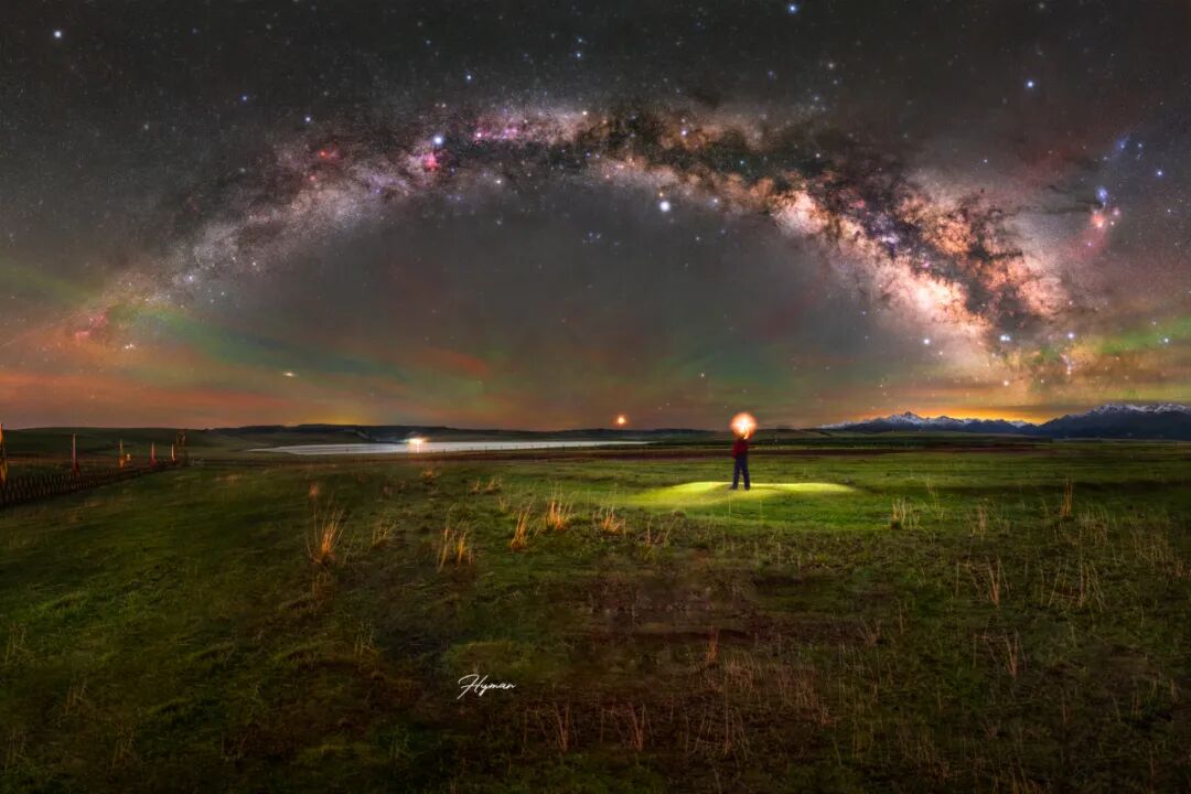 在喀纳斯静谧的夜中,一位魔法师希望对自己修炼多年的法术进行检验,于是使出了“螺旋升天法力无边”,在银河星辉之下创作出了这样一幅美丽的画卷。