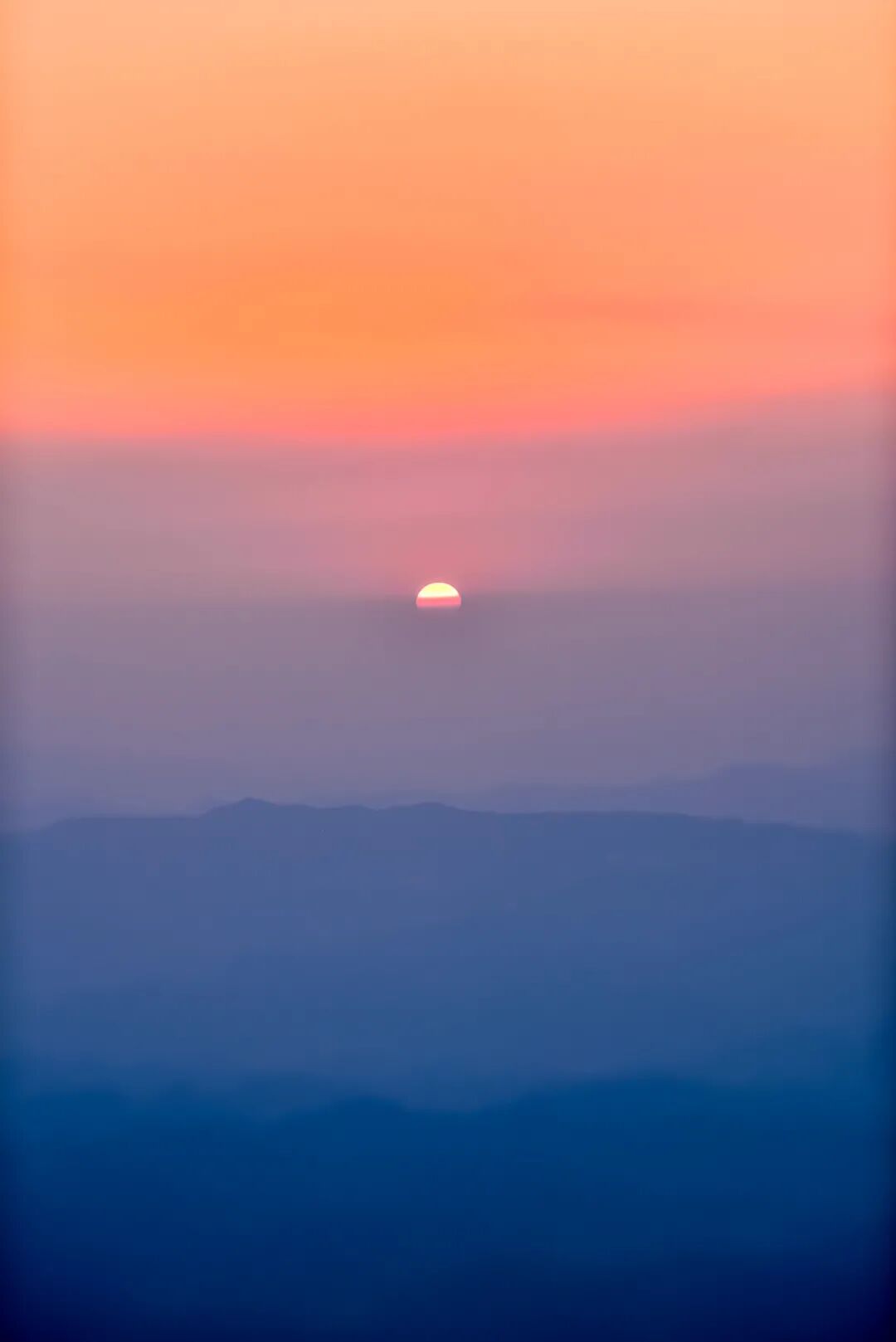 傍晚,在紫金山顶俯瞰南京城,城市的灯火还未点亮,西沉的太阳躲进了云雾中。
