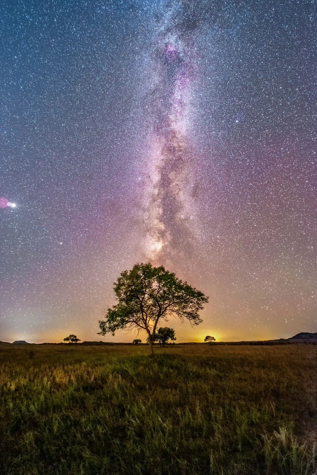 这是一颗不平凡的树,它是大庆星空摄影人的灵魂寄托。每逢晴天,人们就会三三两两来到这里安营扎寨,黄昏时段人们载歌载舞,夜幕降临后,才是星空摄影爱好者最为忙碌的时段。图片展示了星空下的古树与星空下的我们的工作场景。