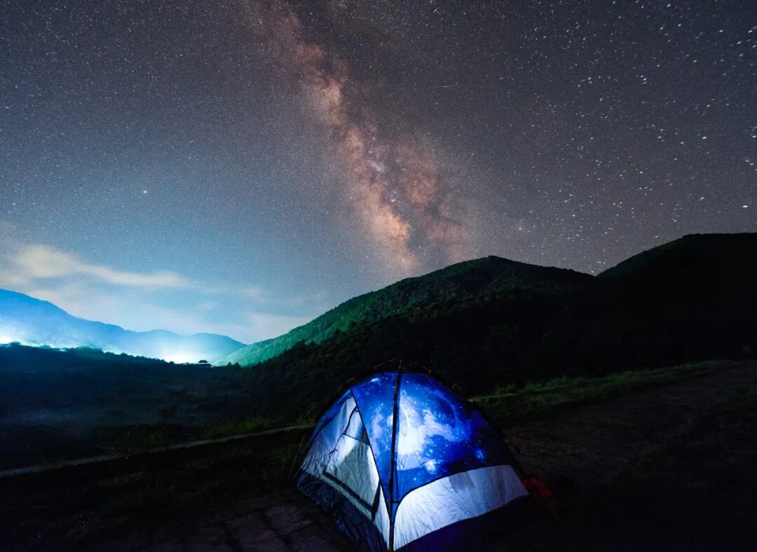 7月底的台风来临,江浙一直下雨,8月1日下午发现临安天气不错,便和家人驱车前往,在天池山顶看到璀璨的夏日银河。拿露营帐篷作为前景,记录下这壮丽的美景。