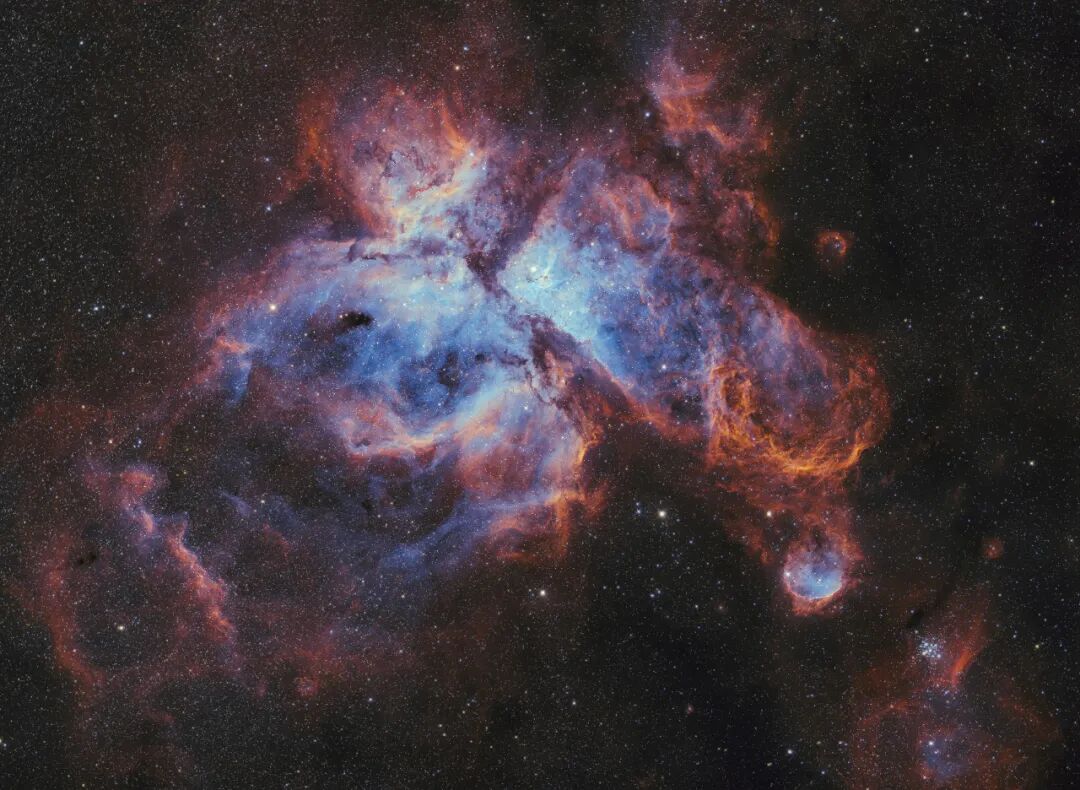 船底座η星云又叫卡利纳星云,也称为钥匙孔星云、船底座大星云、η卡利那星云、或NGC 3372。是银河系人马臂内距离我们9000光年的巨大星云,位置在船底座,包含有数颗O型星。虽然它距离我们十分遥远,但星云中央区域依然明亮得足以让肉眼看到(不过在赤道和南半球观察较佳)。