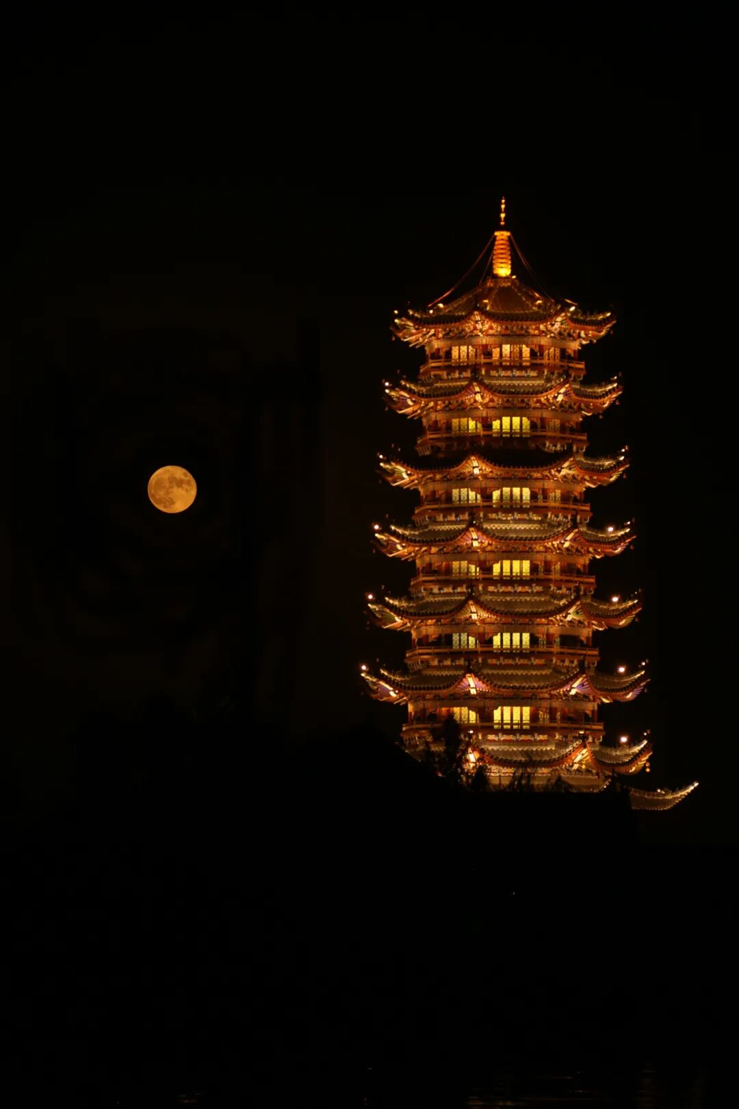 中秋节的晚上,独自一人走到湖边,看月亮升起,记录下了这团圆之夜的美好时刻。