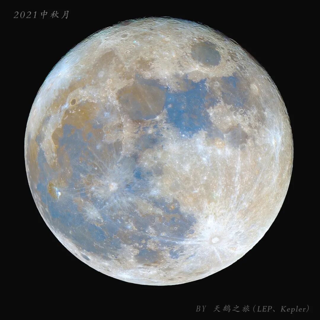 自古以来,中秋赏月代表着人们对生活的美好寄托。中秋节当晚,观测并记录下超清月面,彩色的月球十分漂亮!(图中的色彩是真实存在的,目视月亮也可以看到一些颜色,只不过没有这么明显。月面各部分颜色不同代表物质组成不同。)