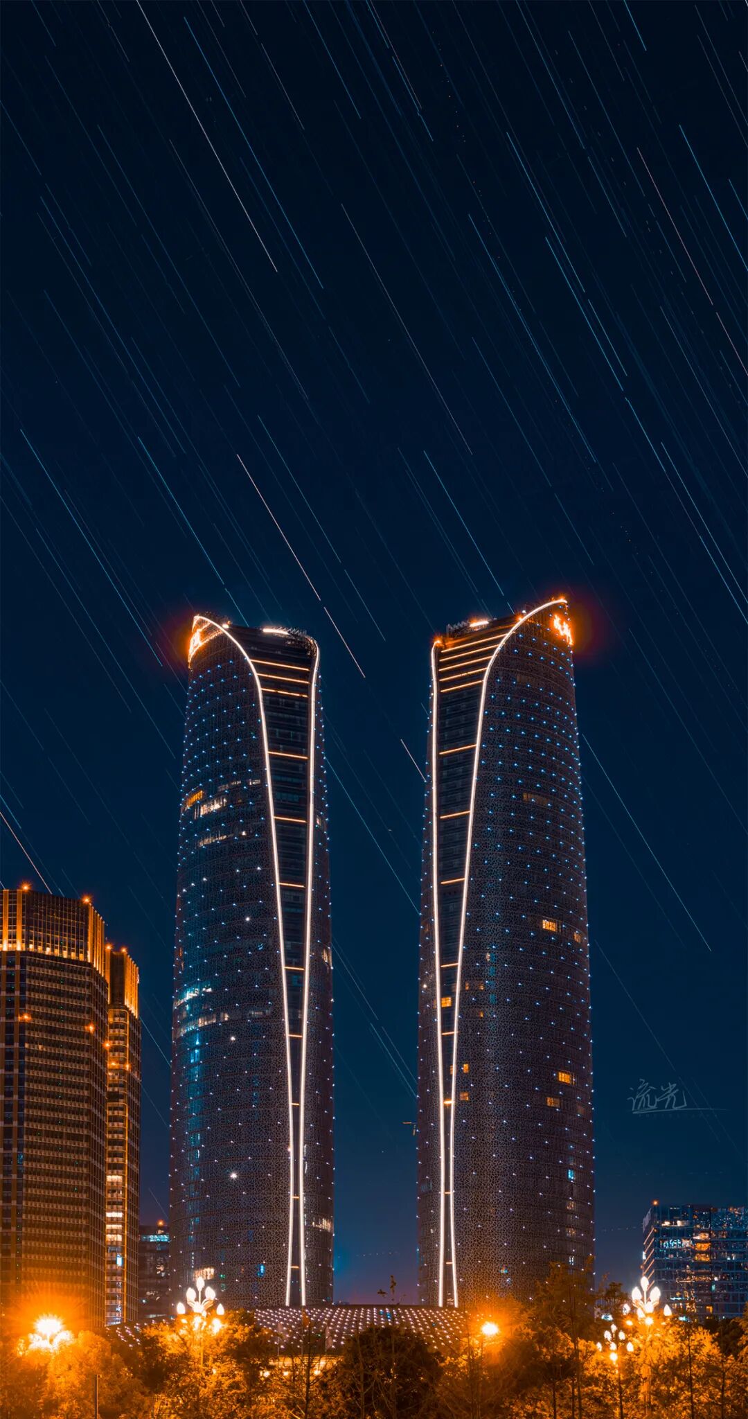 又是一个大晴天,夜幕降临后,星空映衬之下的交子双塔呈现出科技十足的未来感。