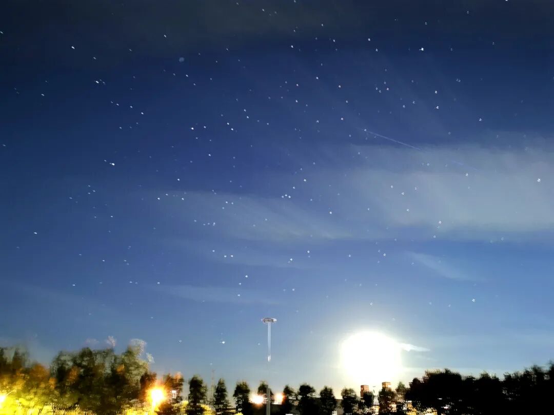 白天得知了有机会观测到神州十三号发射飞行的消息,虽然天空云量有点多,月相也不是很好,不过还是打算去碰碰运气。在学校的停车场搭好了桌椅和三脚架,把手机架在了西南方向,一边看直播一边搜索着天空。在寒风中等待了三十多分钟后,终于在发射后400多秒时发现了一个暗橙色的亮点!用双筒镜隔着云层隐隐约约观测到了盾形的尾焰!实在是太幸运了!过了不久听到“二级关机”的口令,照片中的轨迹也因此中断了。为祖国的强大而感到无比自豪,衷心祝愿神州十三号任务取得圆满成功!